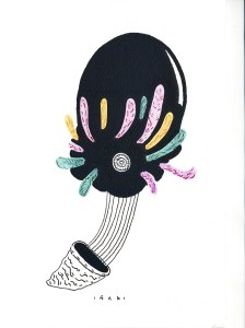 “SERIE DE NARRATIVAS INFLABLES CON MAGIA INFLAMABLES PARA EL ESPIRITU”. Marcadores permanentes + Acrílico sobre cartón. 10 x 15 cm. 2012