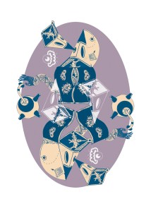 “HISTORIAS CONJUNTAS CONJUGADAS EN CONJUROS”. Composición digital impresa en Papel Aquarelle, libre de acido, 400 grs. 30 x 44 cm. 2013