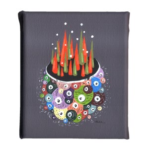 “CUERPOS FLOTANTES Y CELESTIALES HECHOS EN FIBRAS DE MAGIA E INTIMIDAD”. Acrílico sobre tela. Obra realizada el 2013 para exposición Ojo Andino Chile 2015. Luciano Benetton Collection Fondazione Giorgio Cini. Agosto. Venecia. Italia.