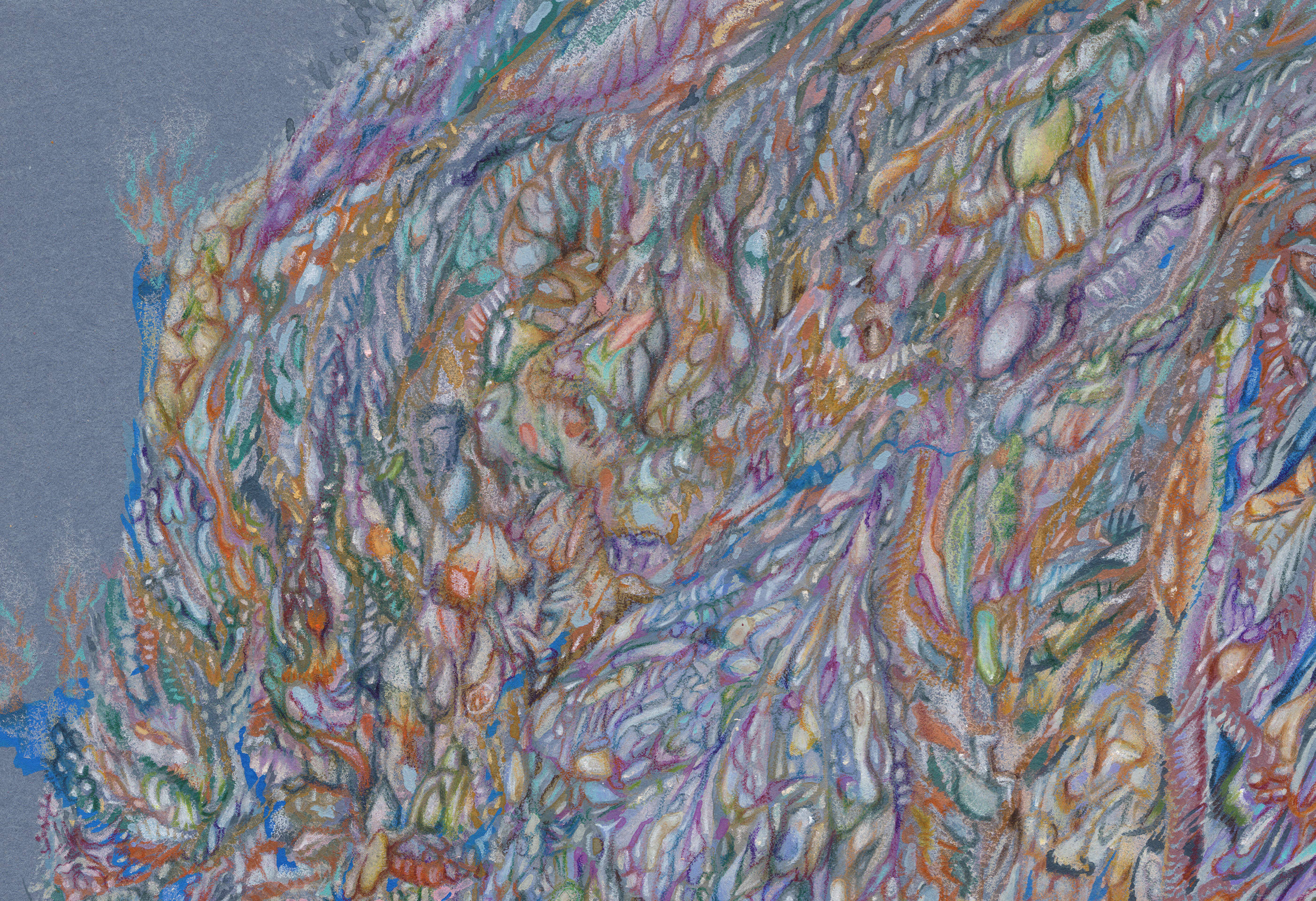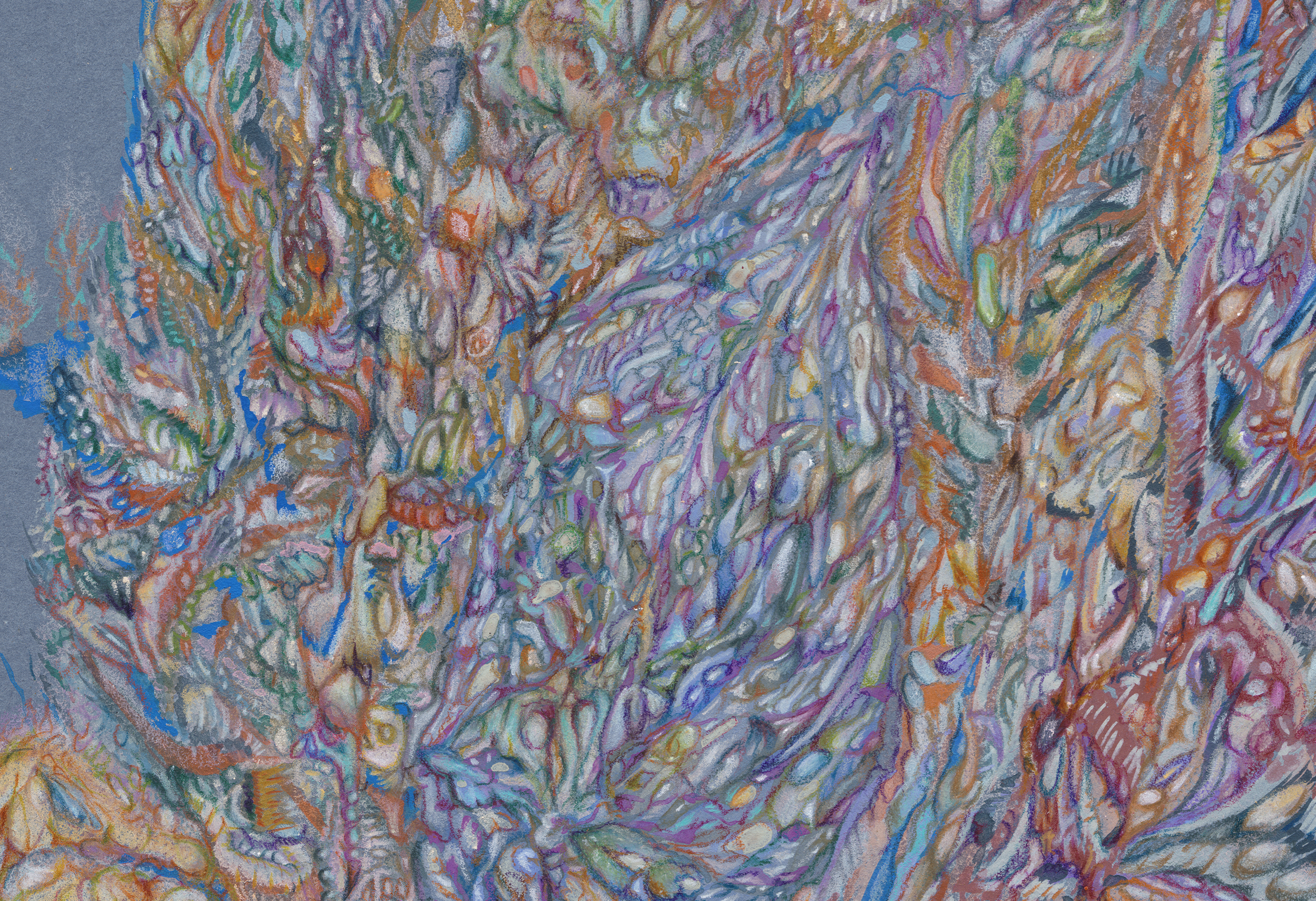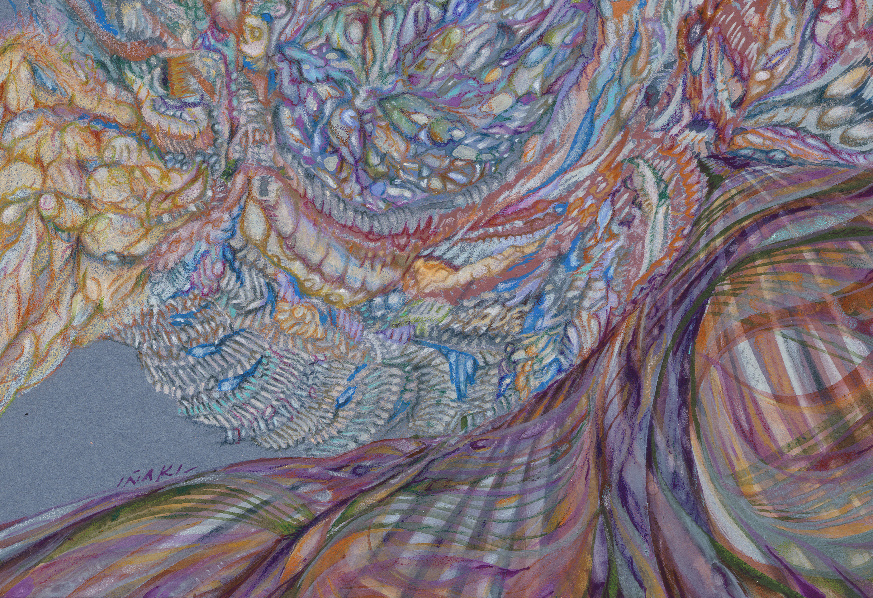 Lápiz color, acuarela, gouache, spray acrílico sobre papel clairefontaine, 250 gr.