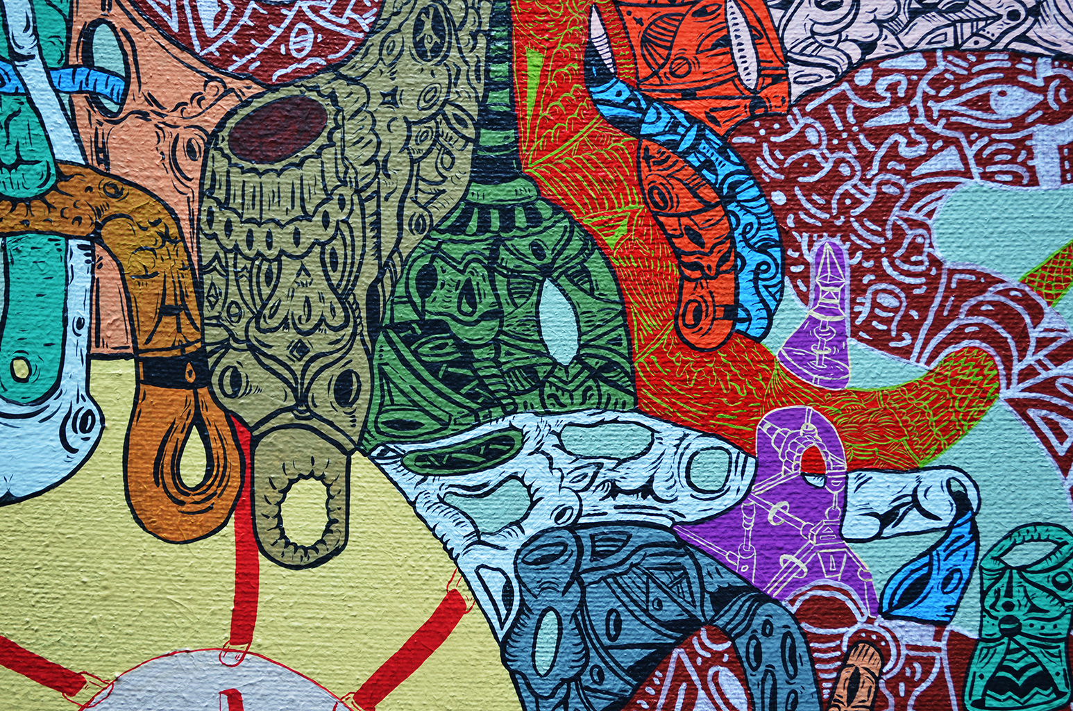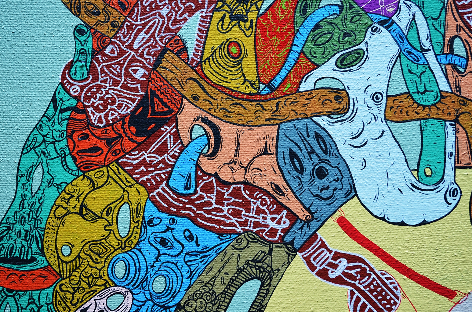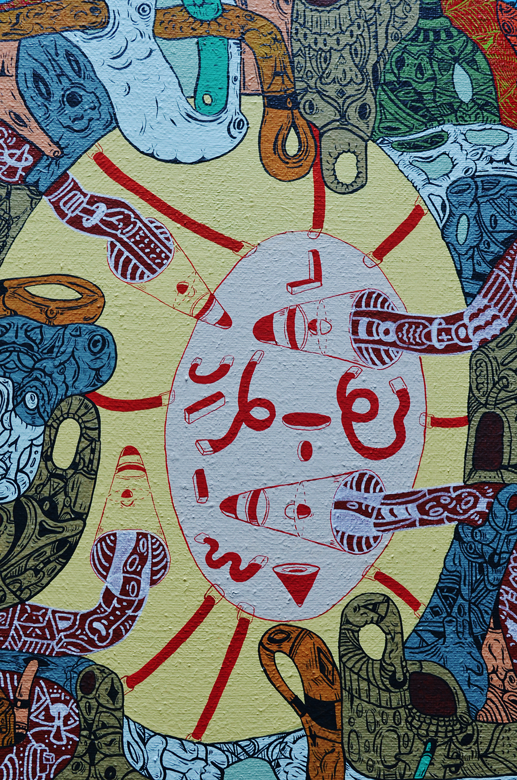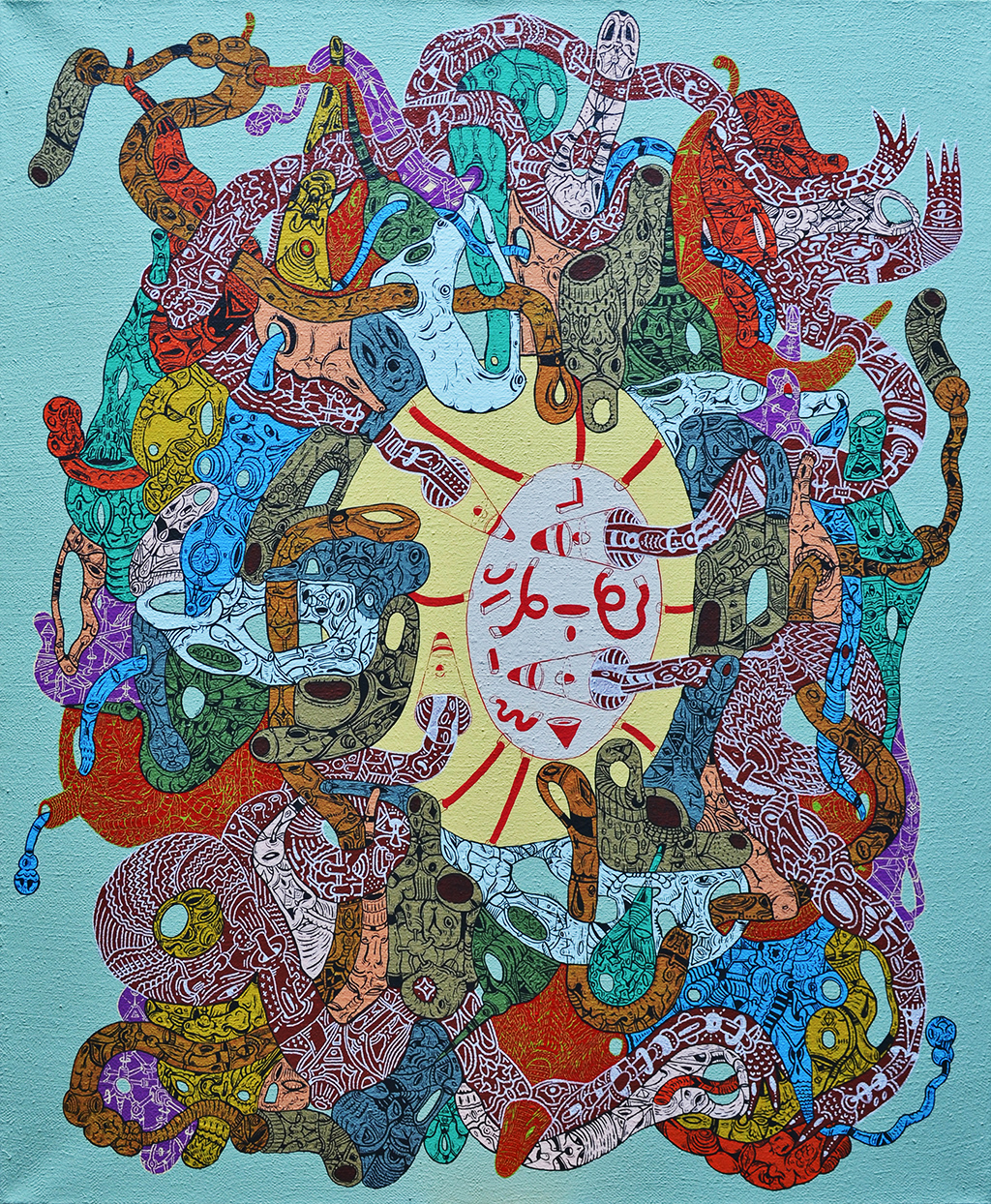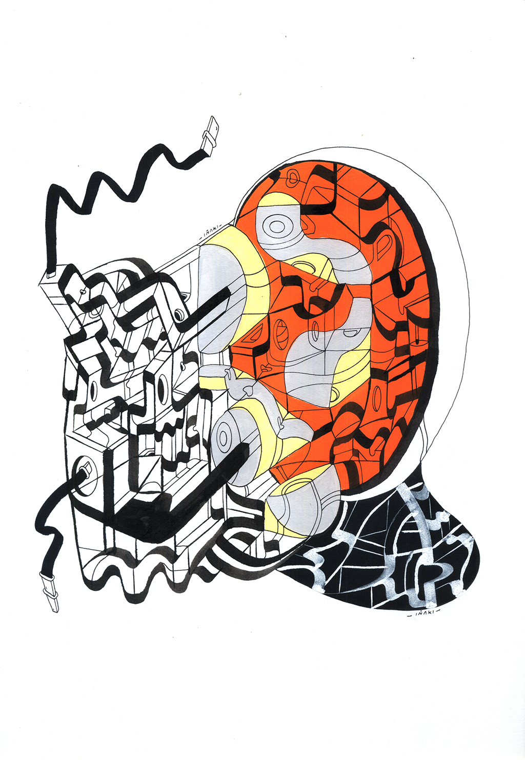 Acrílico, tinta china, marcadores al oleo sobre papel cansón. 21 x 29 cm