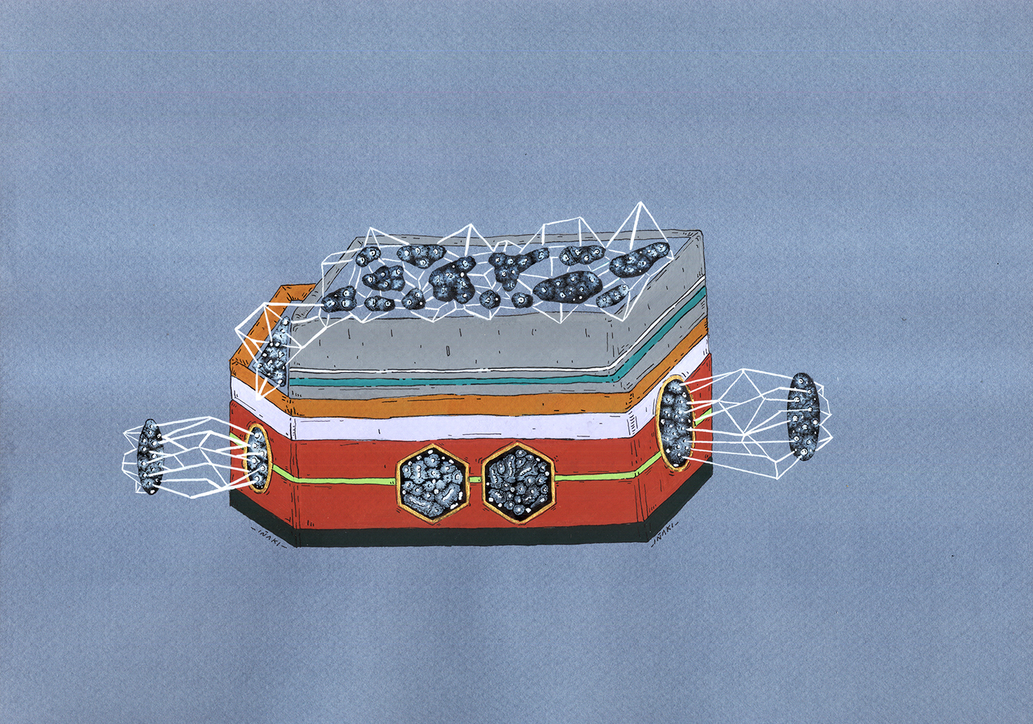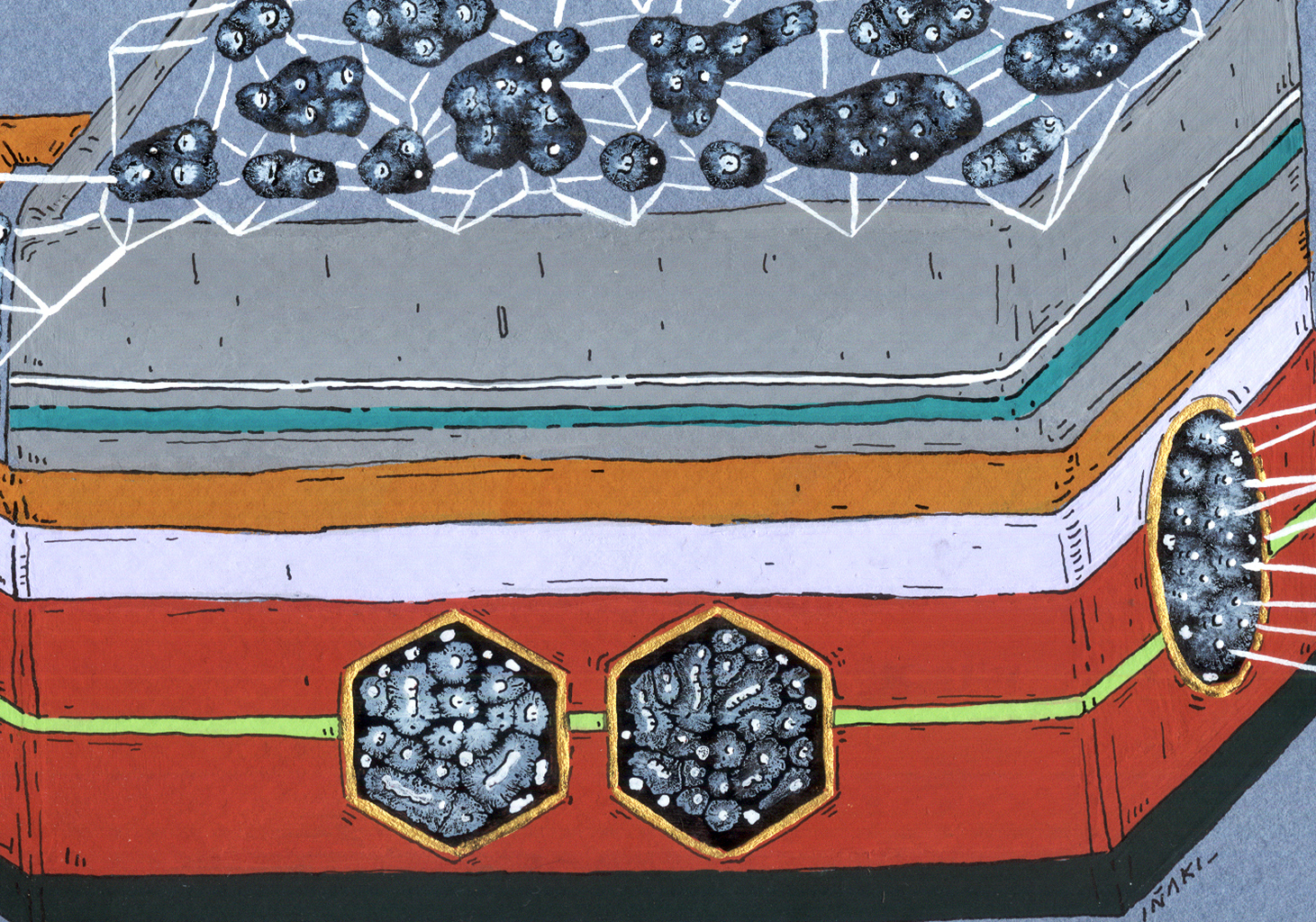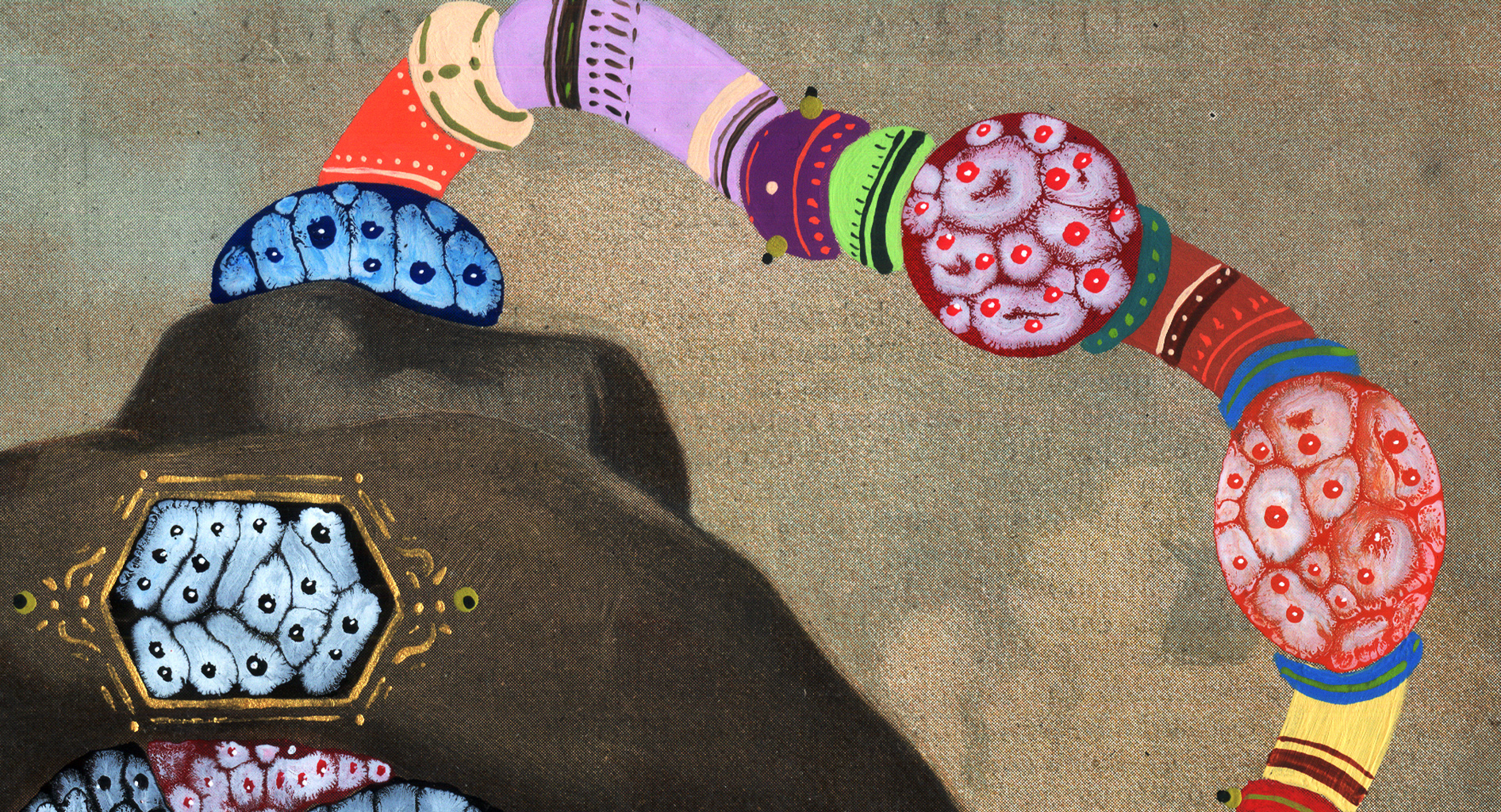Acrílico, tinta china, marcadores al oleo sobre papel. 10 x 14,7 cm. 2014