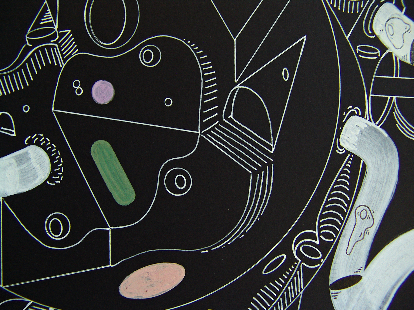 Lápiz tinta Gel Blanco, acrílico sobre cartón espuma negro. 51 x 58 cm. 2014