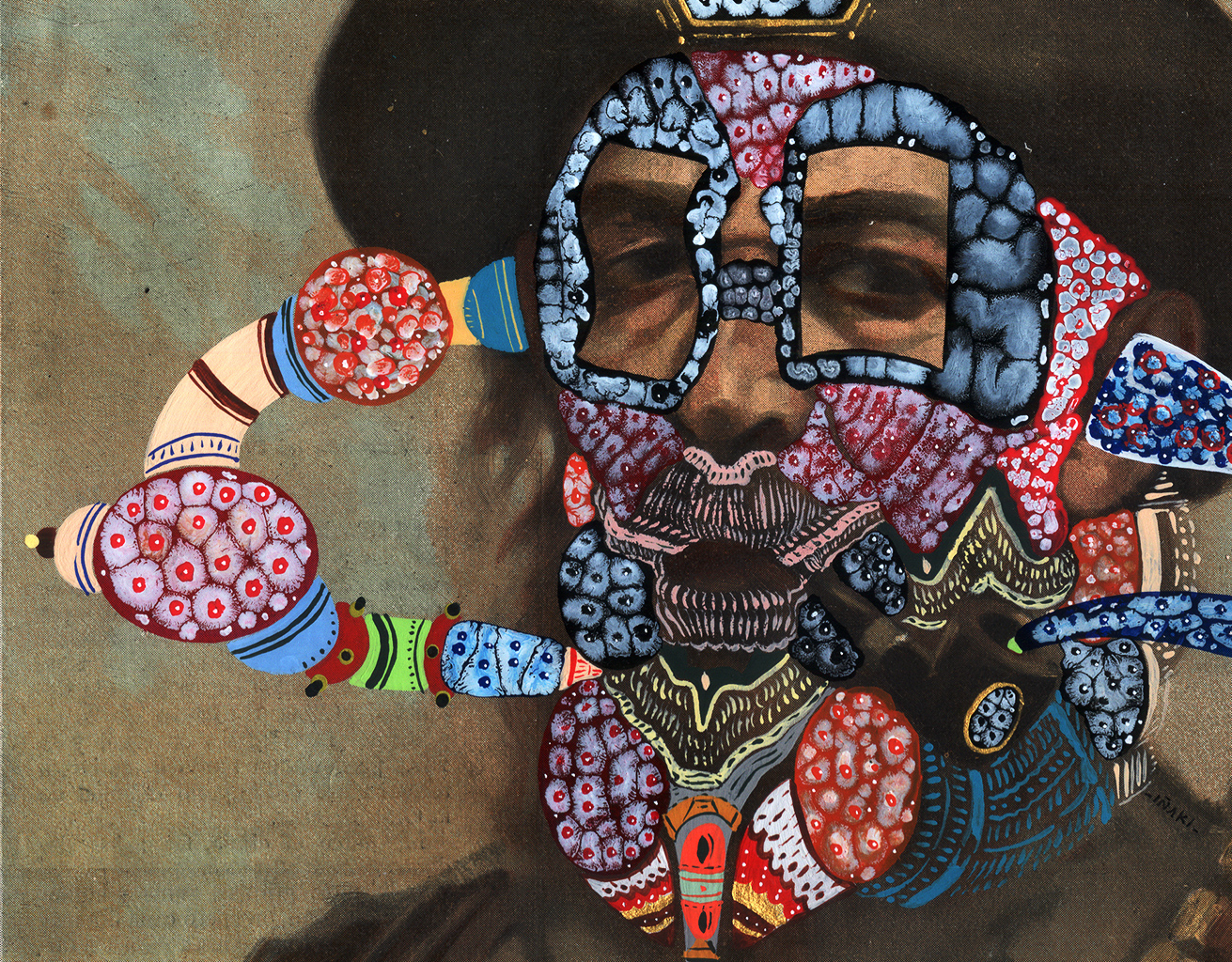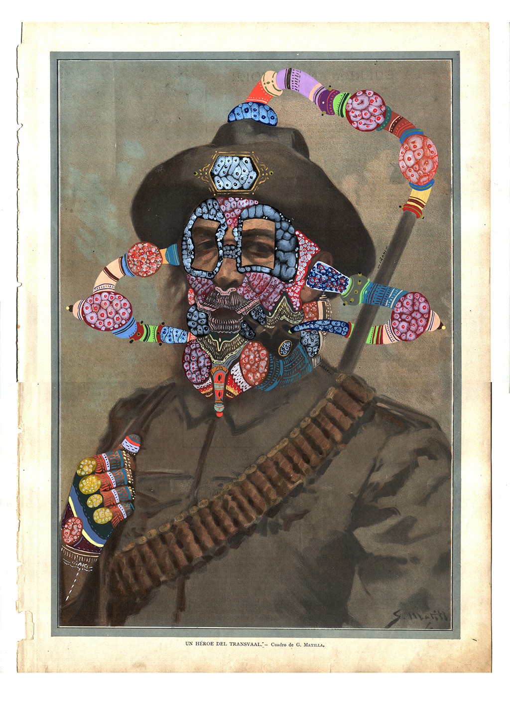 Acrílico, marcadores al oleo sobre imagen de un héroe de Transvaal (cuadro de G. Mantilla). 27,5 x 38 cm. 2014