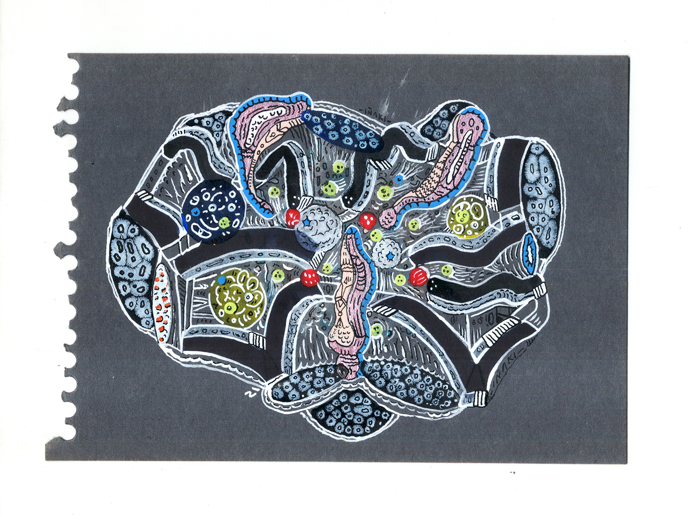 Acrílico + tinta china + marcadores permanente sobre papel cansón. 15 x 21 cm. 2014