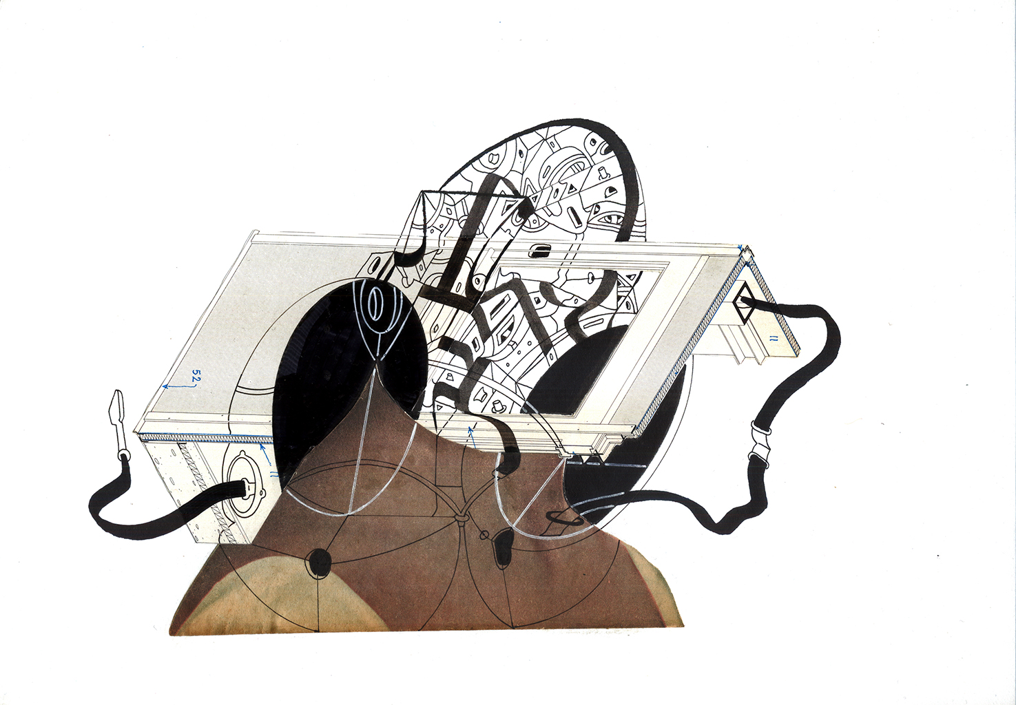 Collage, Tinta china, acrílico, marcador permanente sobre cartón espuma. 21 x 28,5 cm. 2014