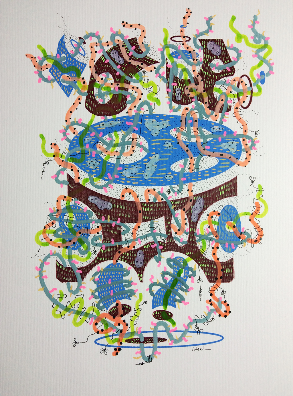 Acrílico, tinta china sobre papel cansón. 21 x 29 cm