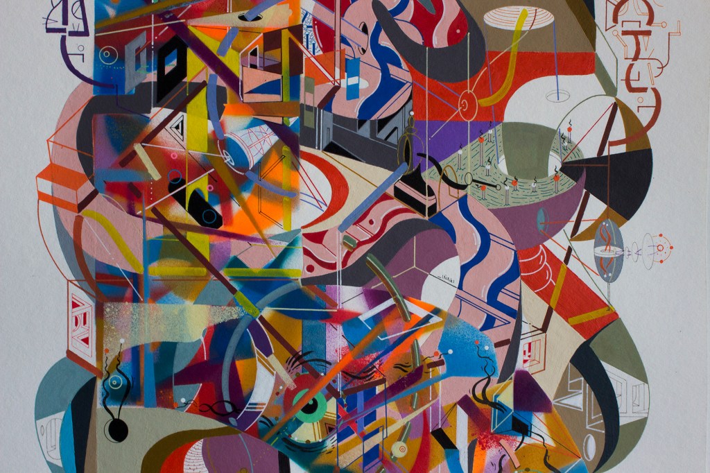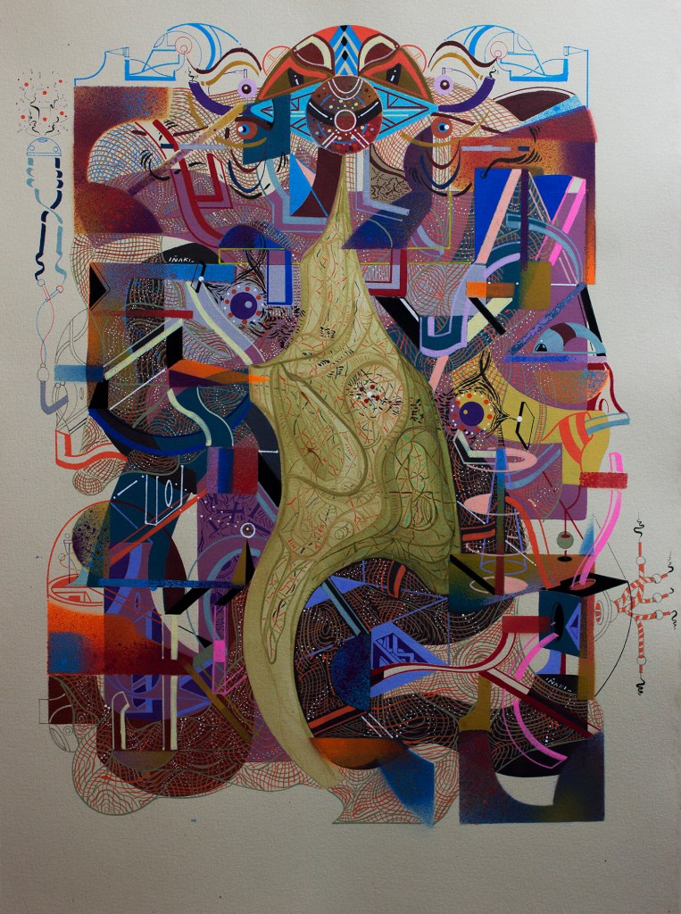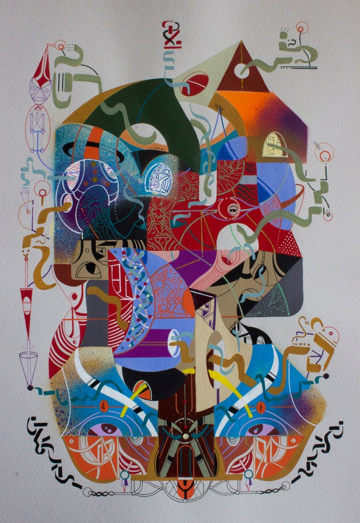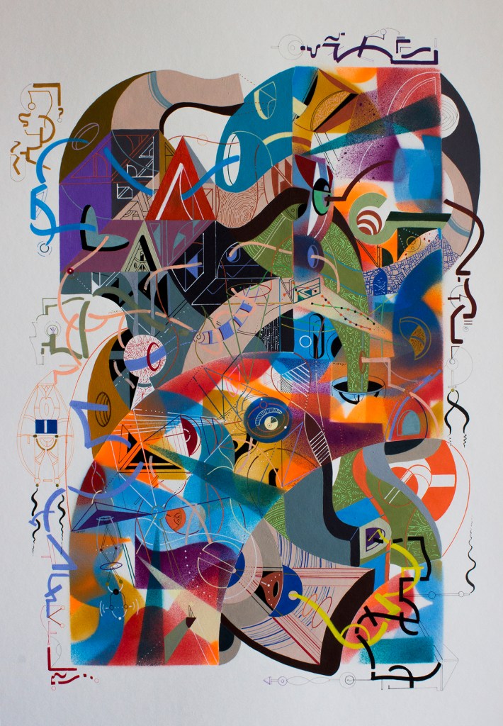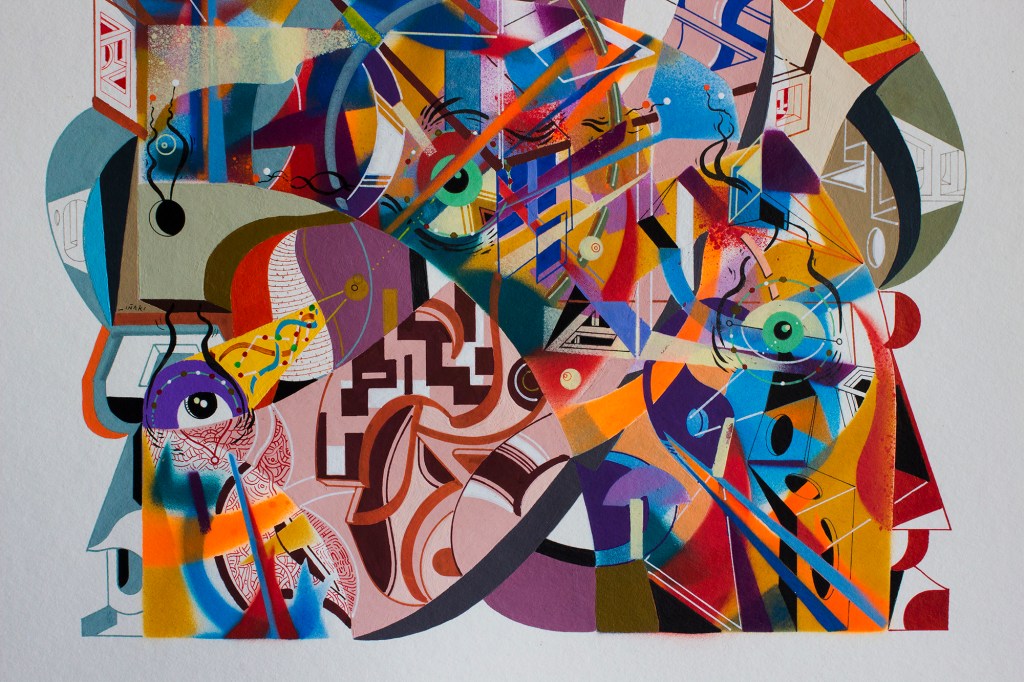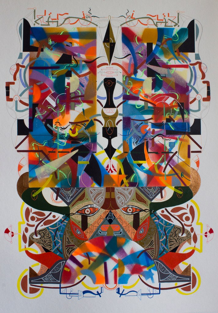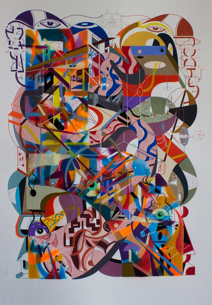 Acrílico (Spray, pincel y pluma), marcador permanente y tinta acrílica sobre papel Bamboo Hahnemuhle de 265 gr. 2018