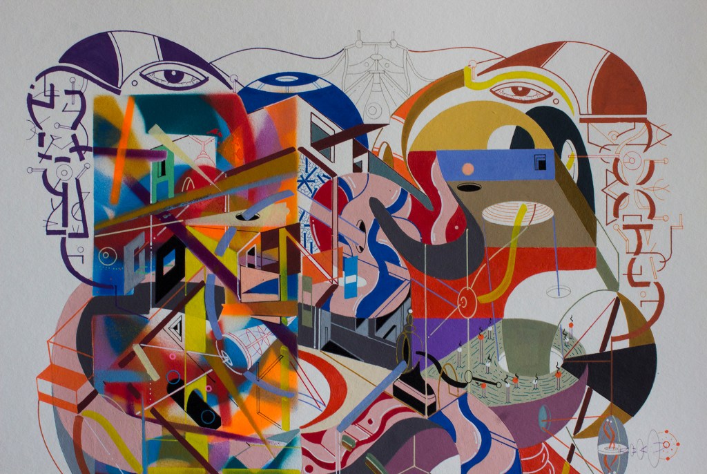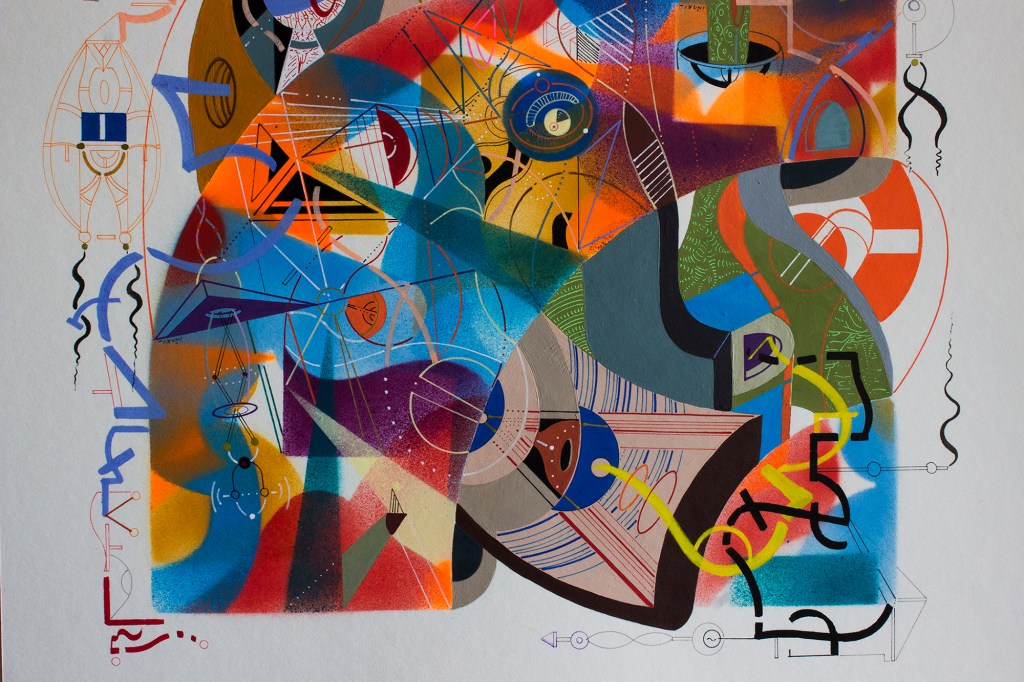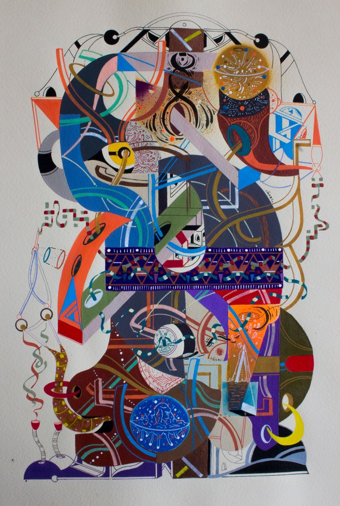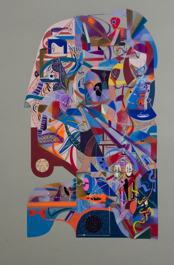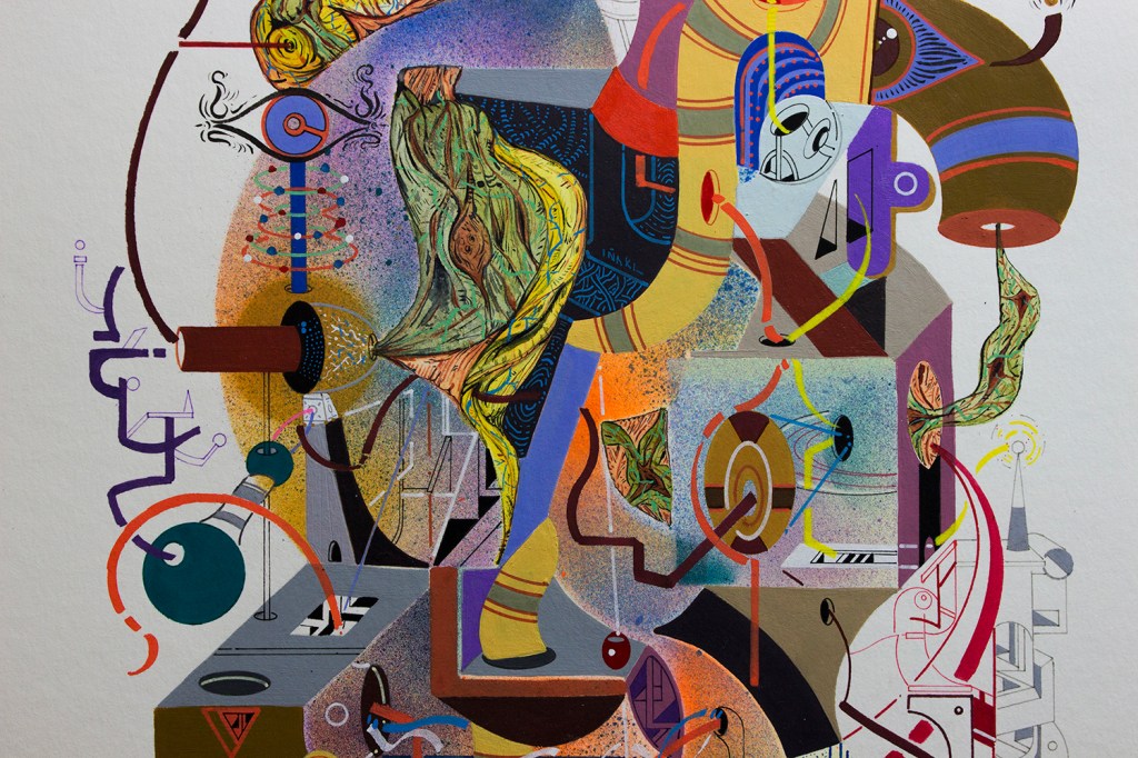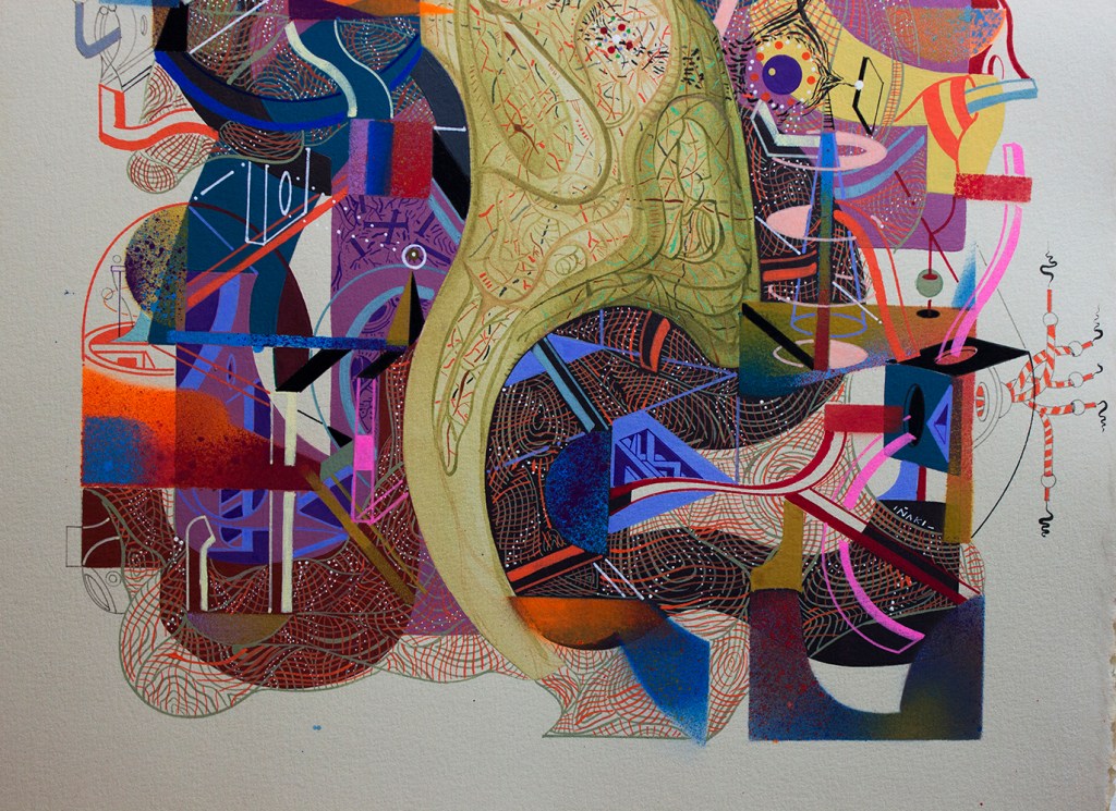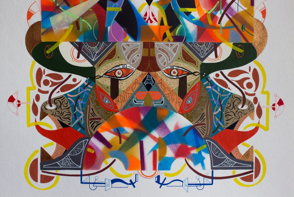 Acrílico (Spray, pincel y pluma), marcador permanente y tinta acrílica sobre papel Bamboo Hahnemuhle de 265 gr. 2018