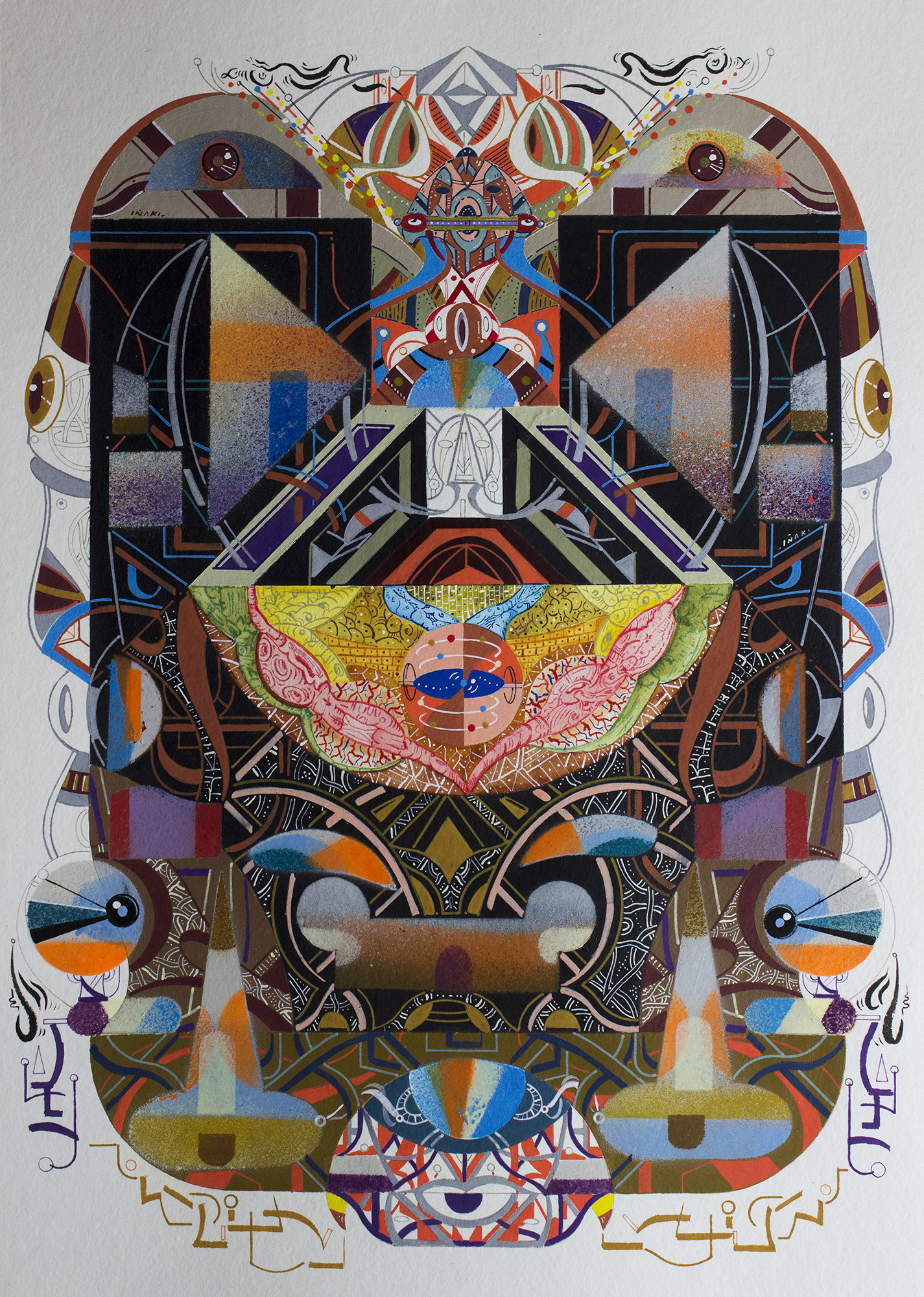Técnica: Acrílico (Spray, pincel y pluma), marcador permanente y tinta acrílica sobre papel Bamboo Hahnemuhle de 265 gr. 25 x 35 cm. 2018.