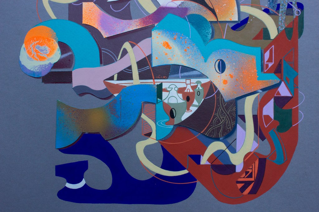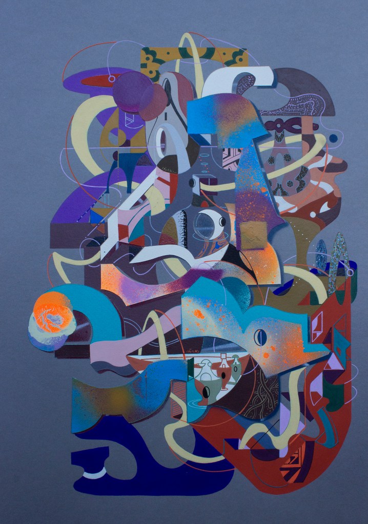 Técnica mixta, collage, acrílico (Spray y pigmento), gouache, acuarela, marcador permanente sobre papel Clairefontaine de 250 gr. 42 x 29,7 cm. 2021