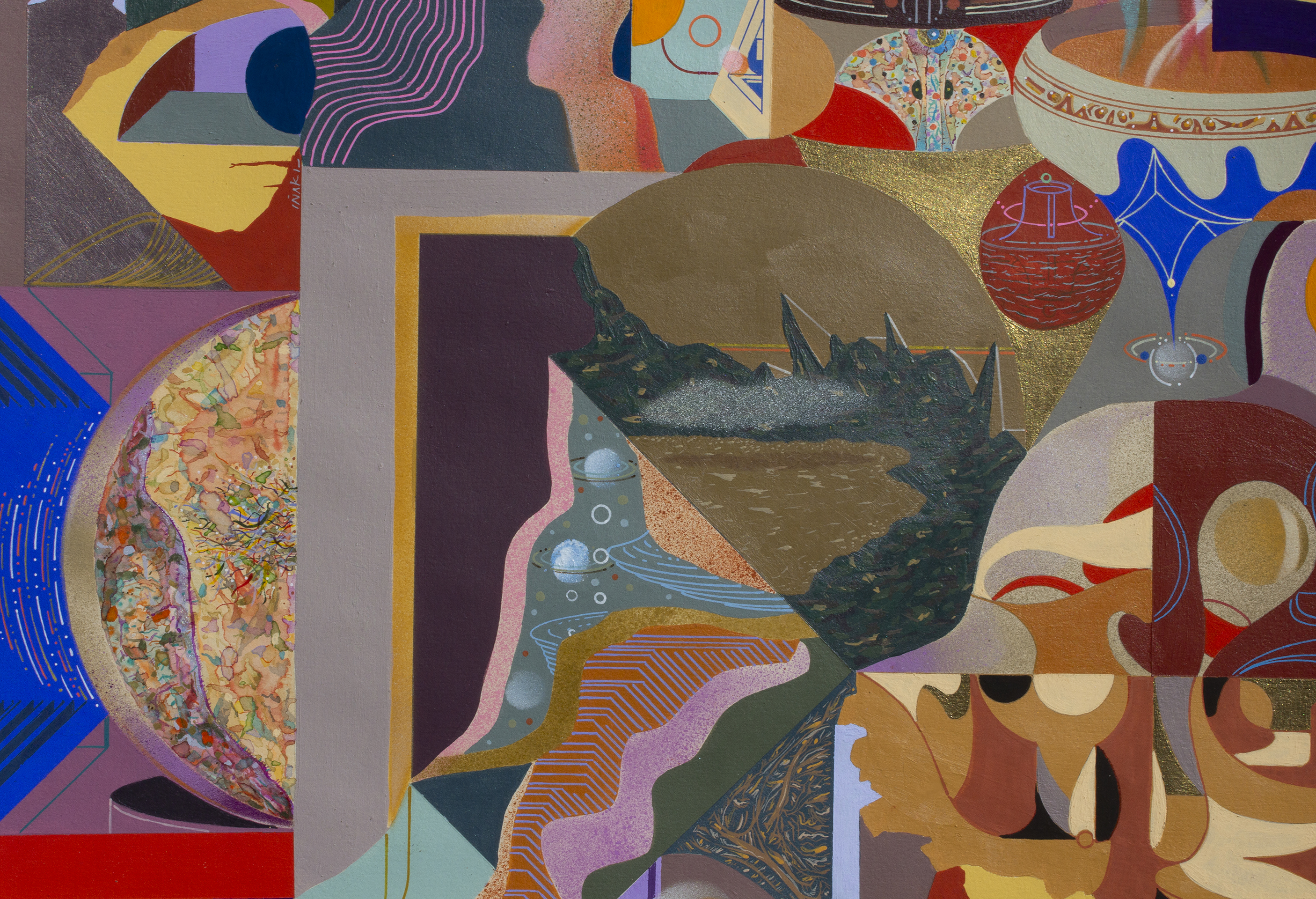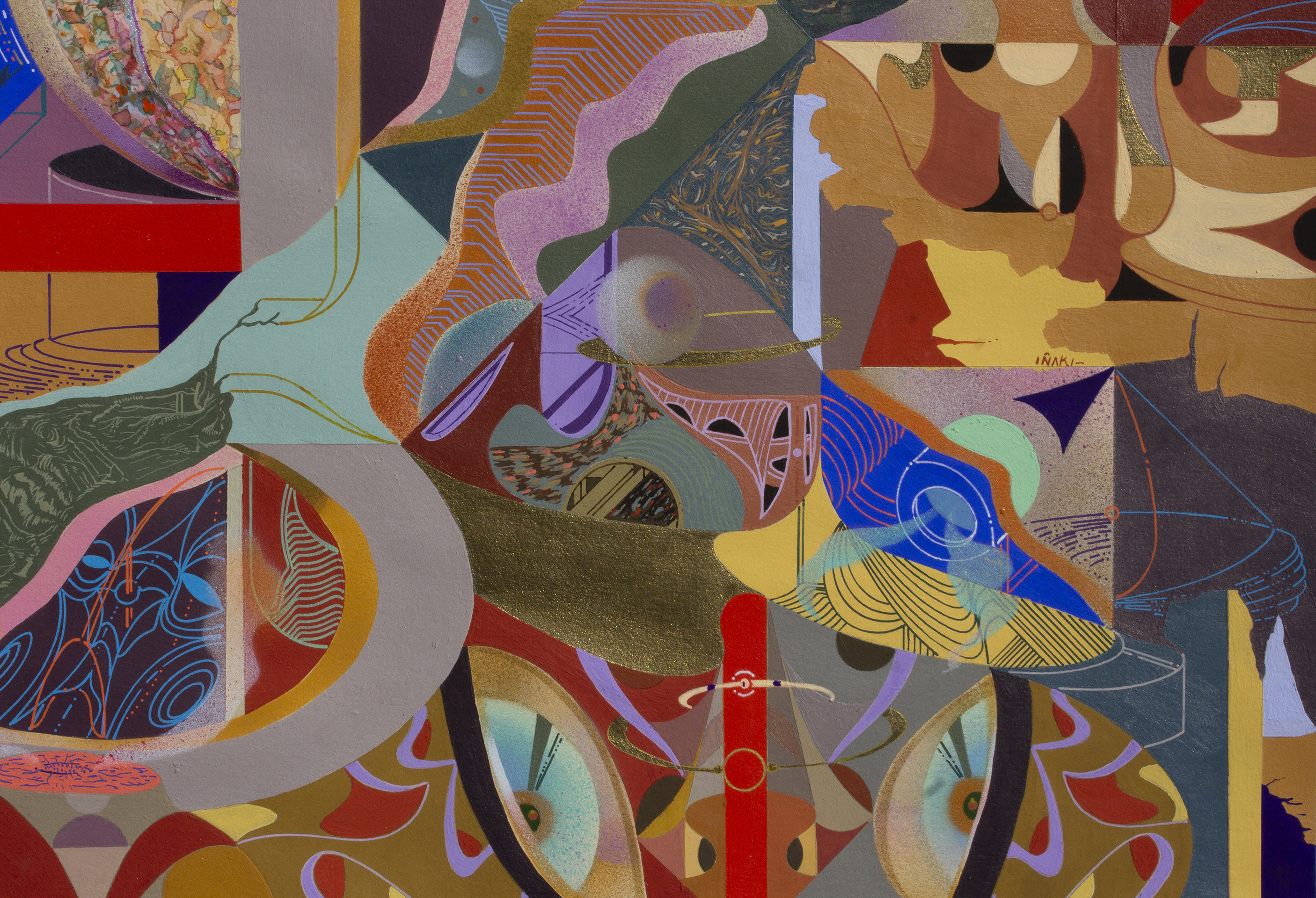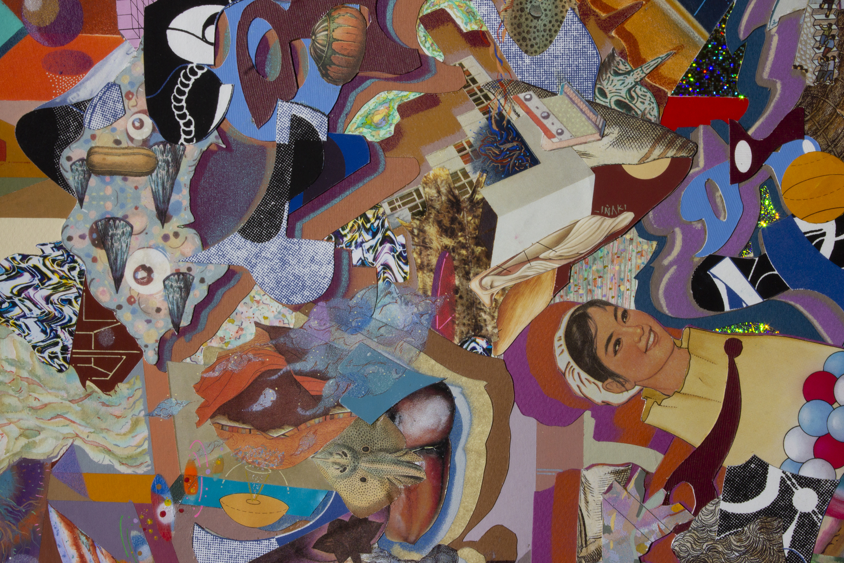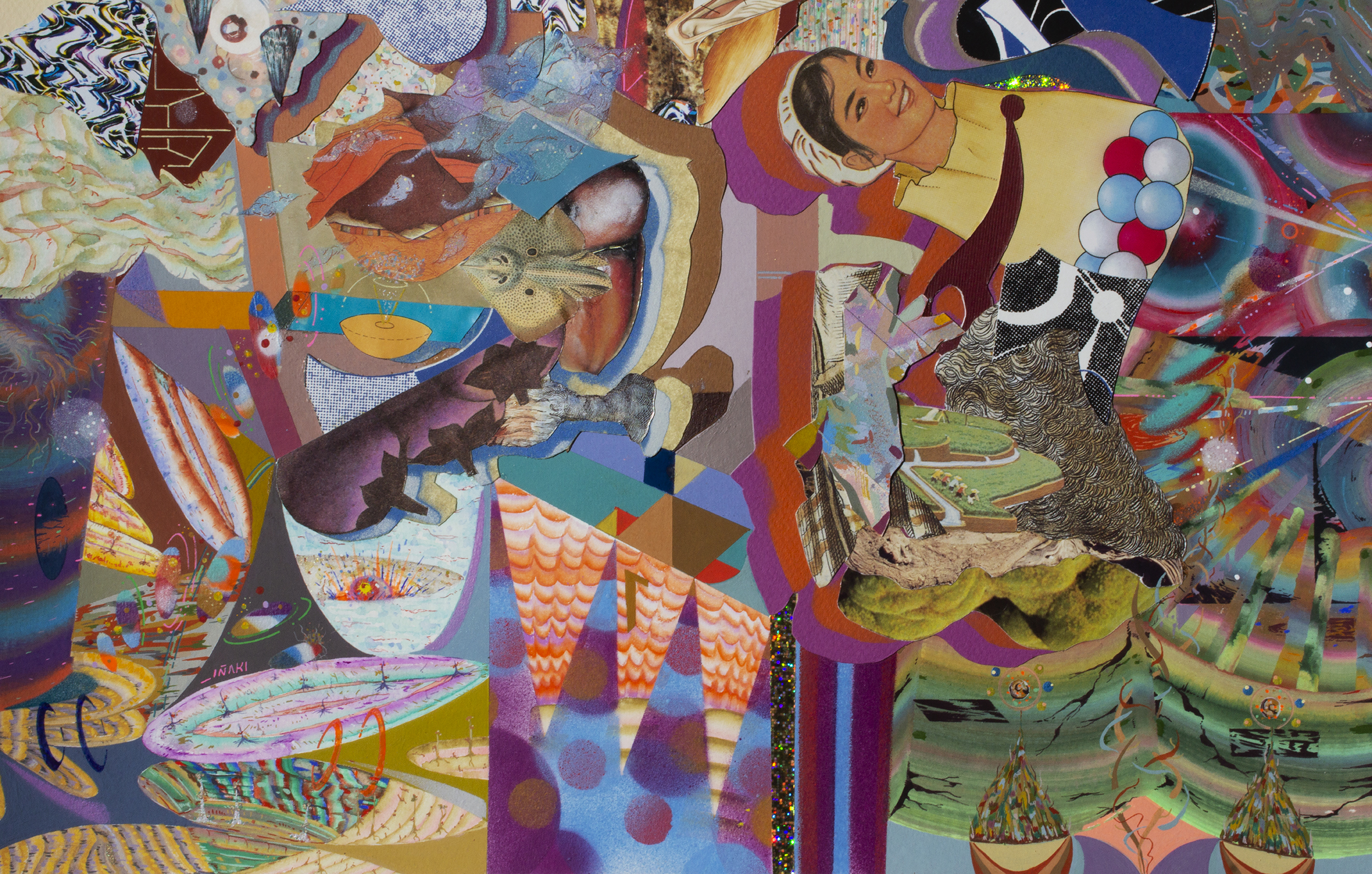 Collage, acuarela, acrílico (pigmento y spray), gouache sobre papel Bamboo Hahnemuhle de 265 gr.