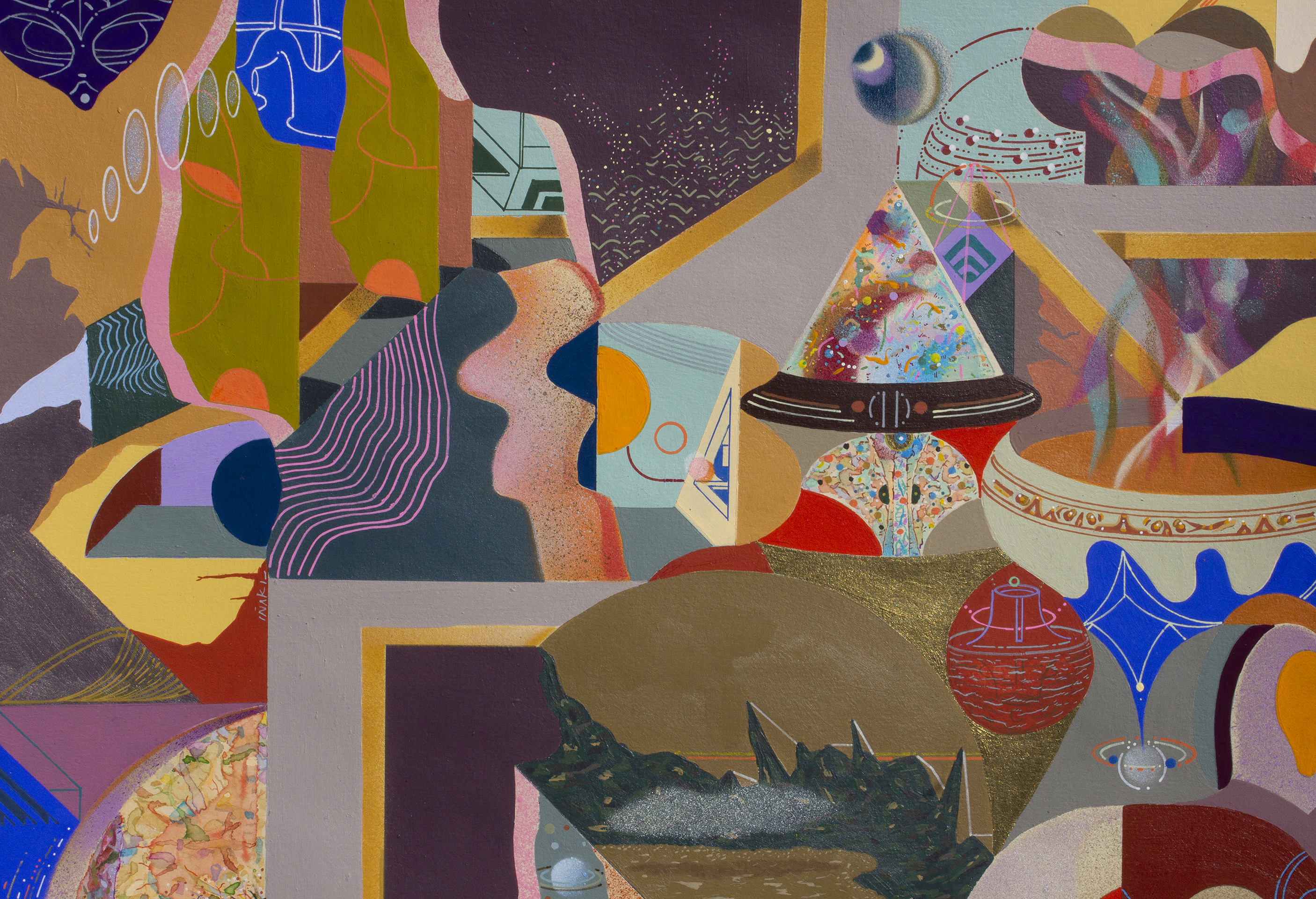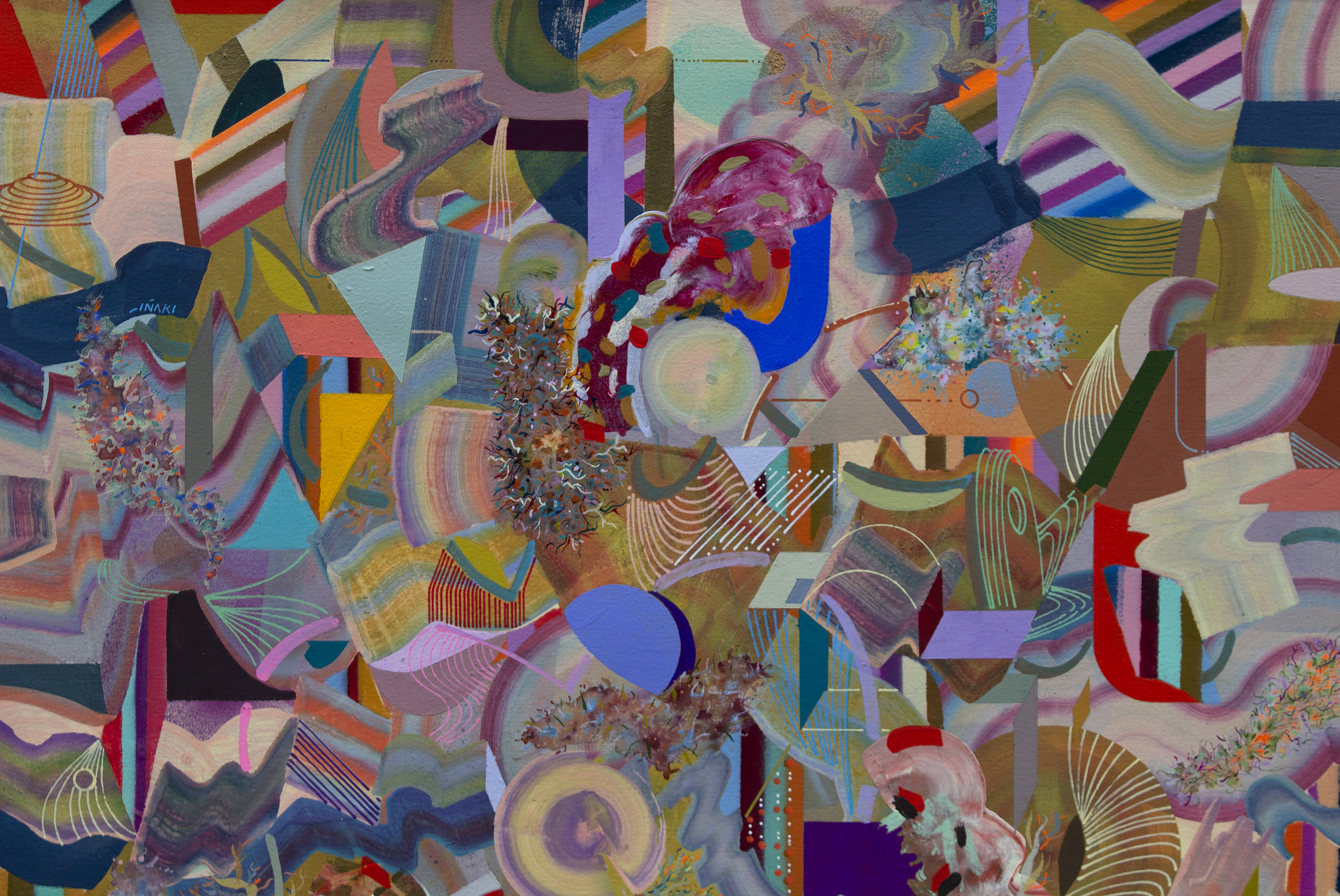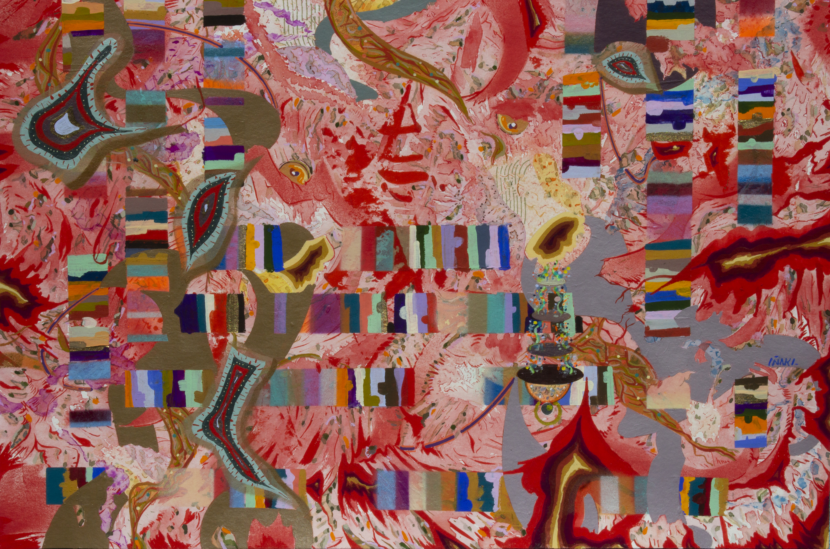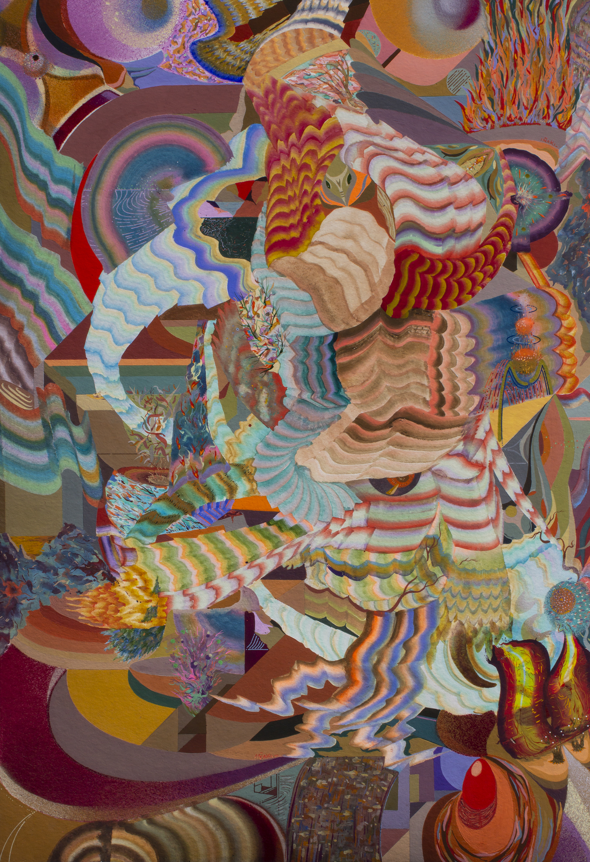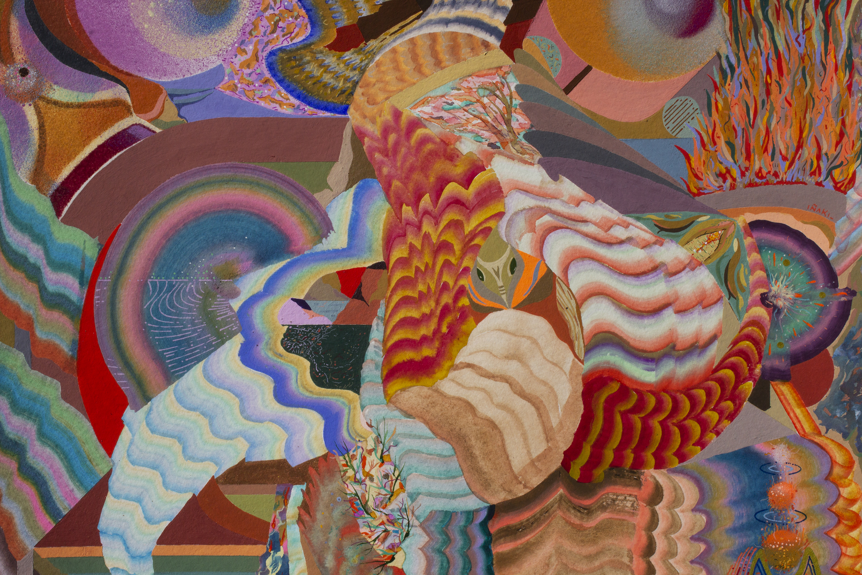 Collage, acuarela, acrílico (pigmento y spray), gouache sobre papel Bamboo Hahnemuhle de 265 gr.