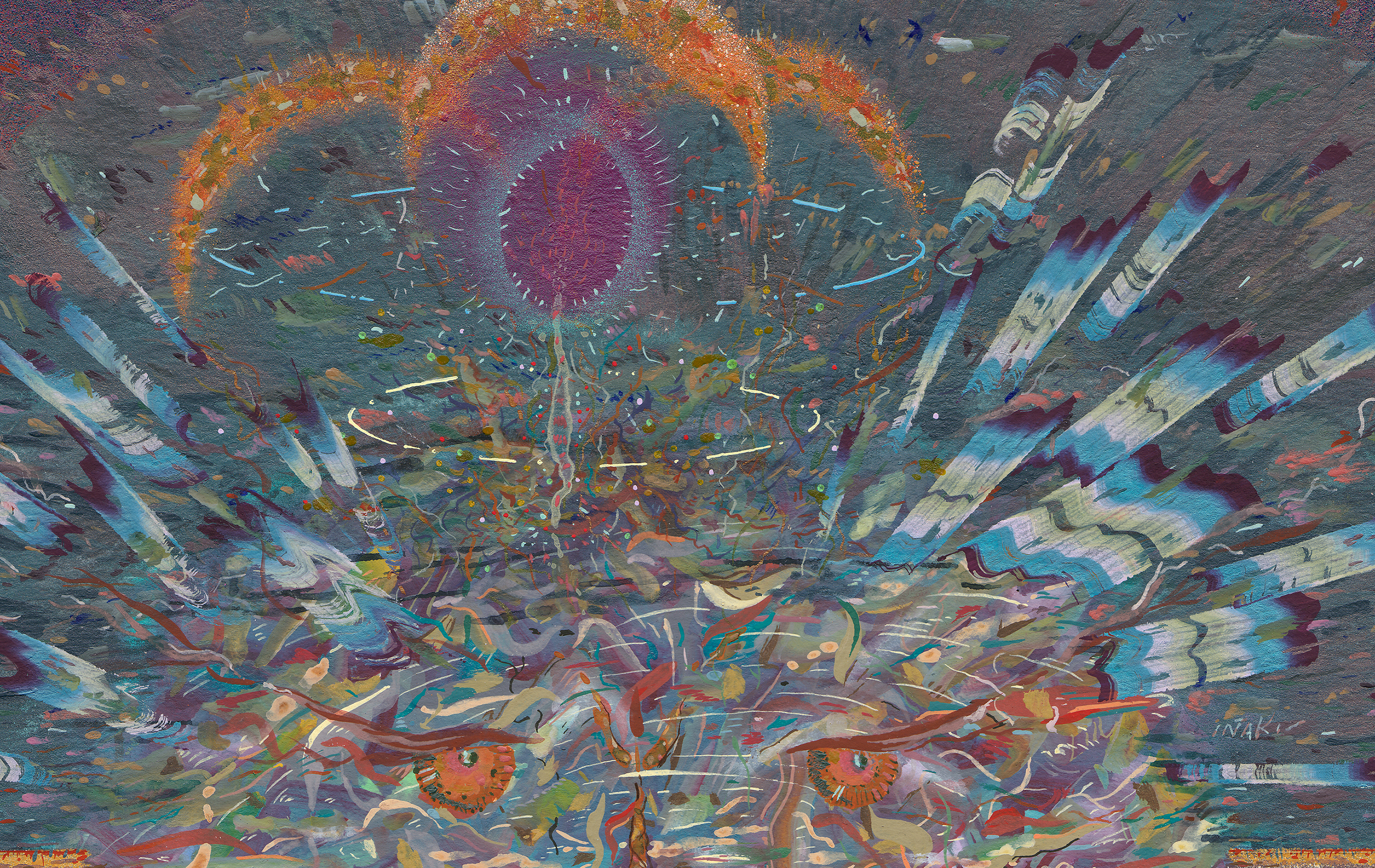 Acuarela, acrílico (pigmento y spray), gouache sobre papel Bamboo Hahnemuhle de 265 gr.