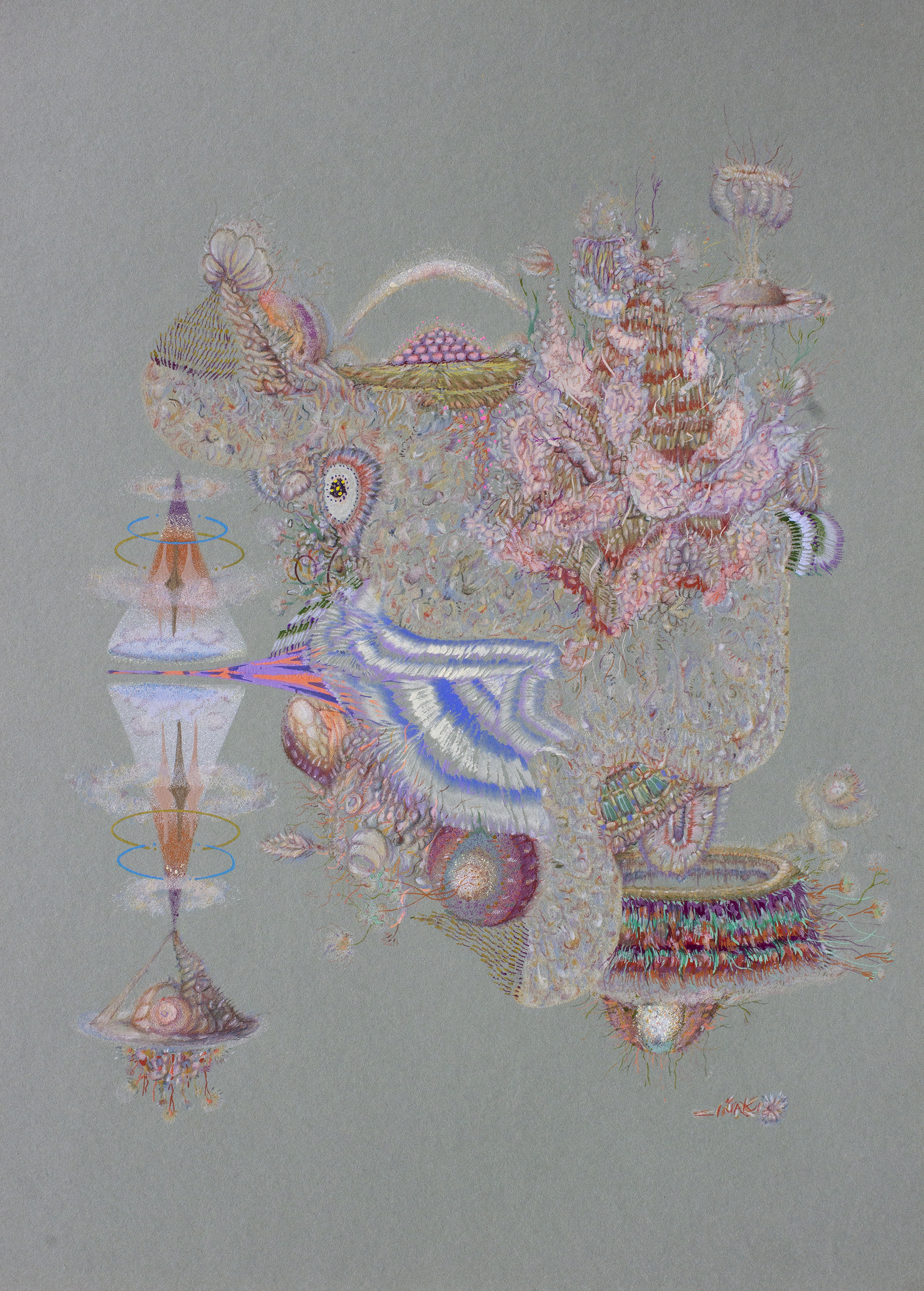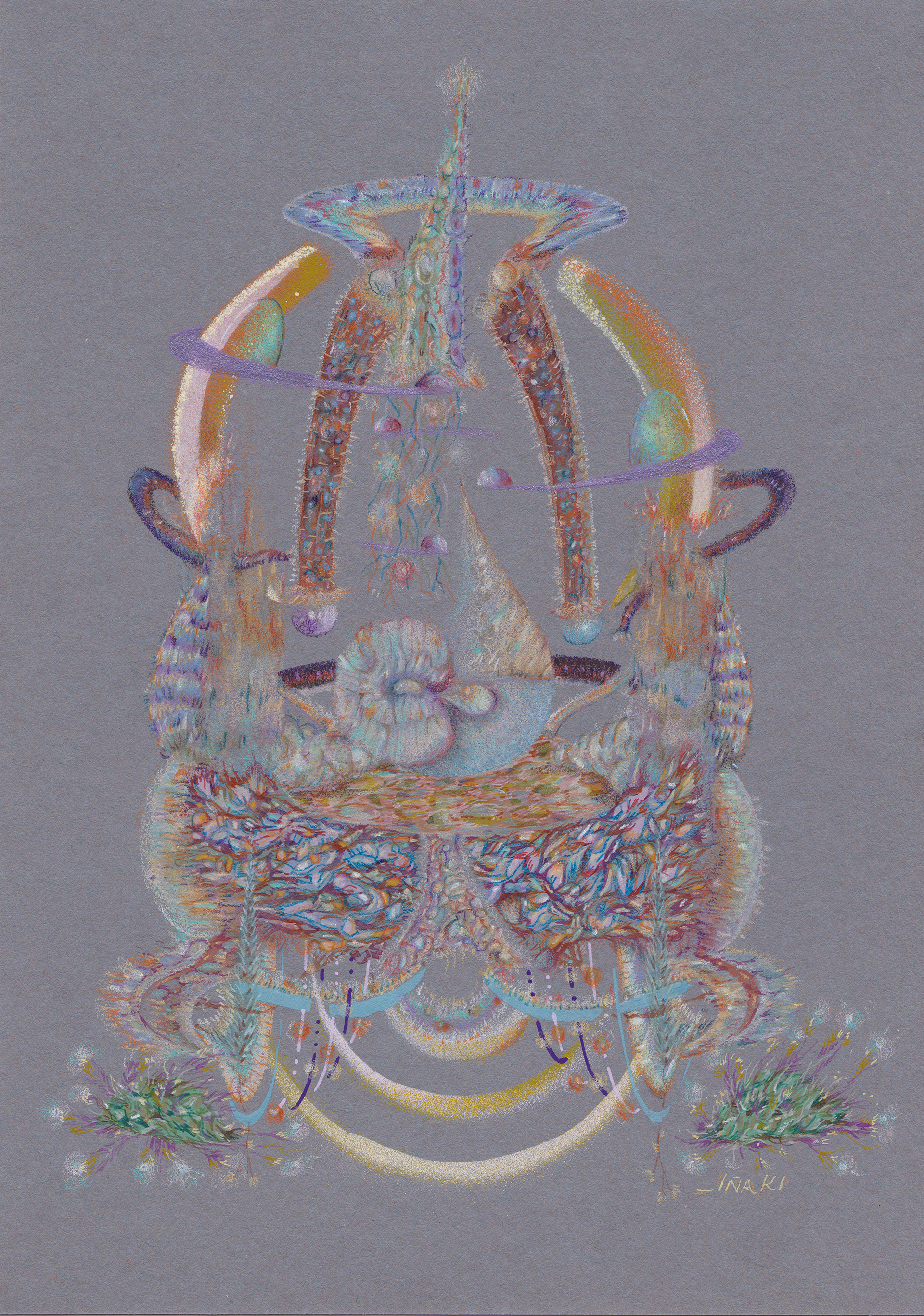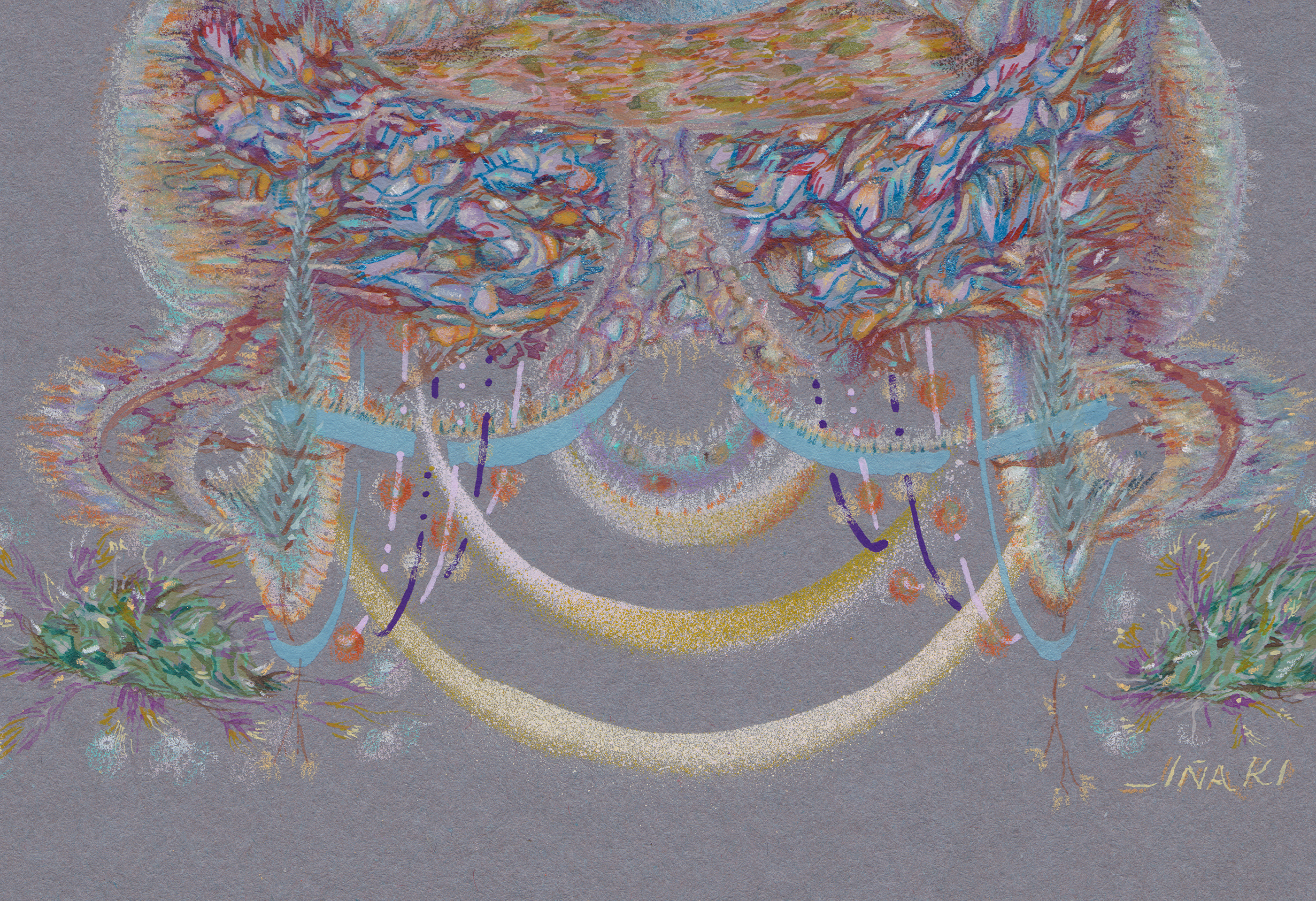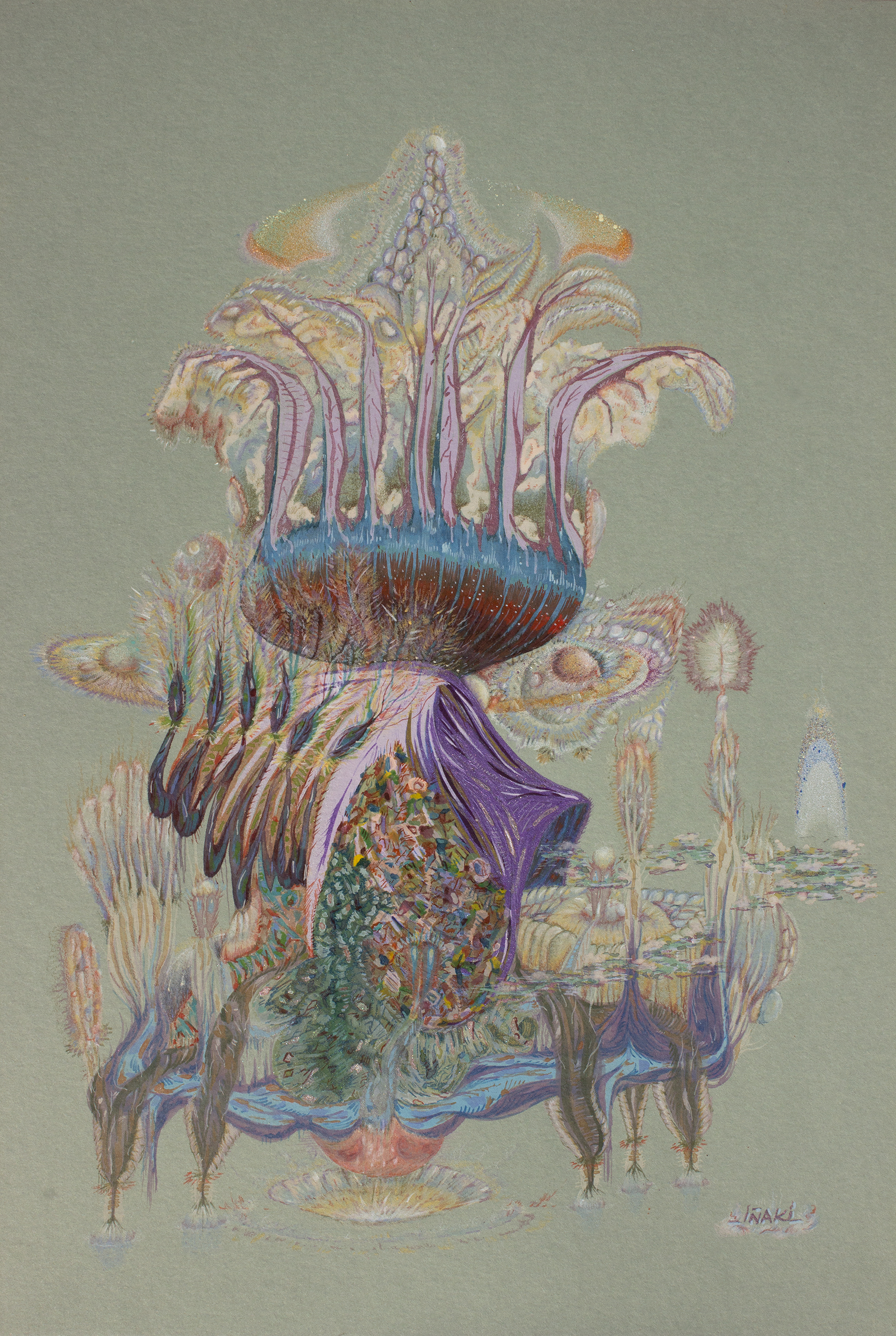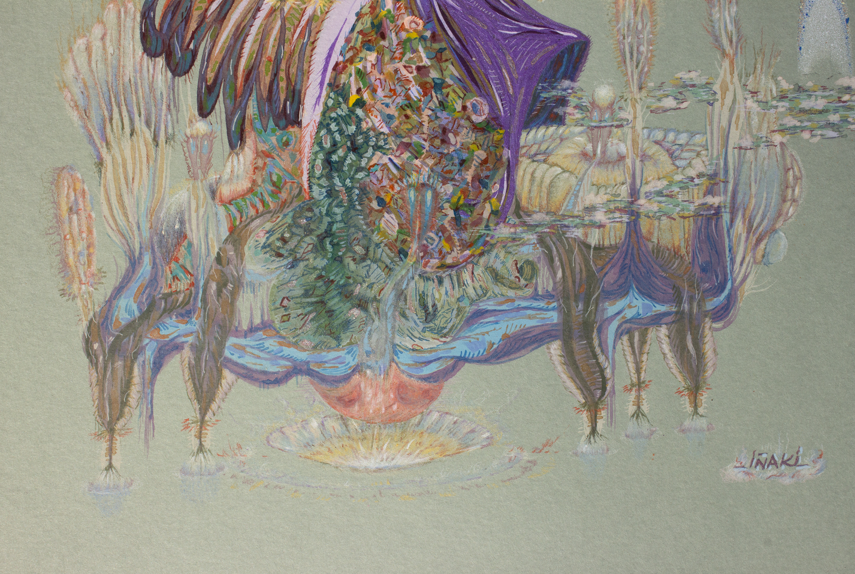 Lápiz color, acuarela, gouache, spray acrílico sobre papel clairefontaine, 250 gr.