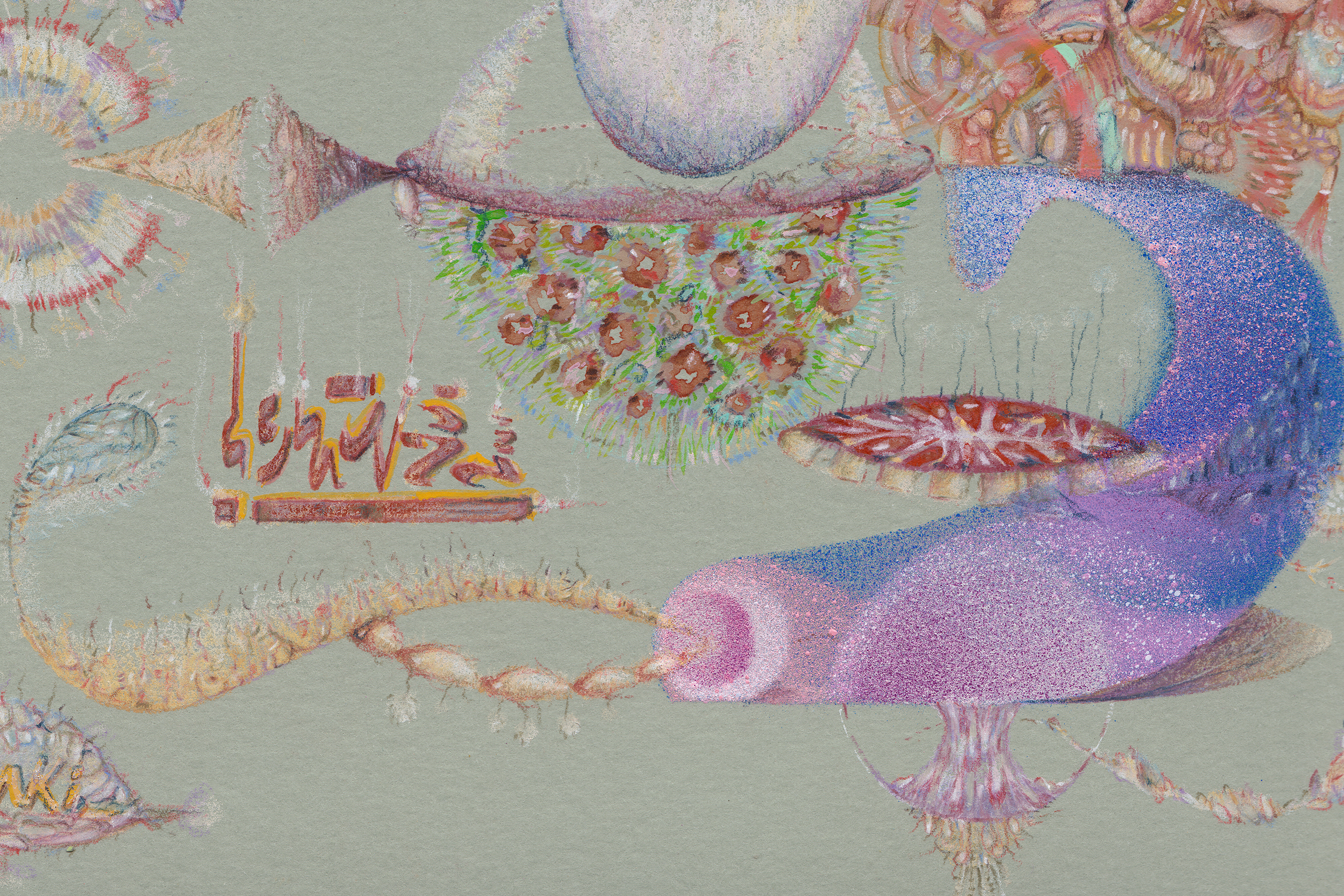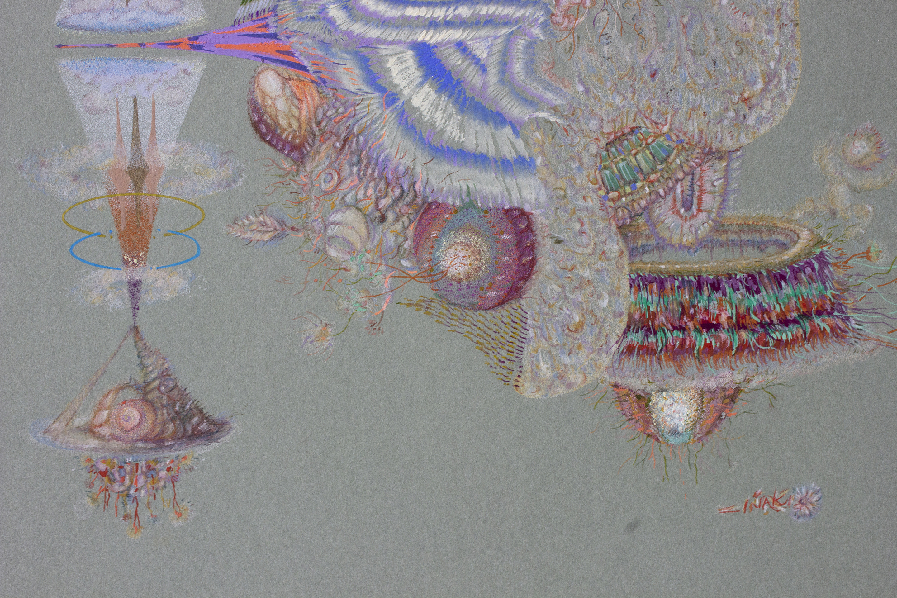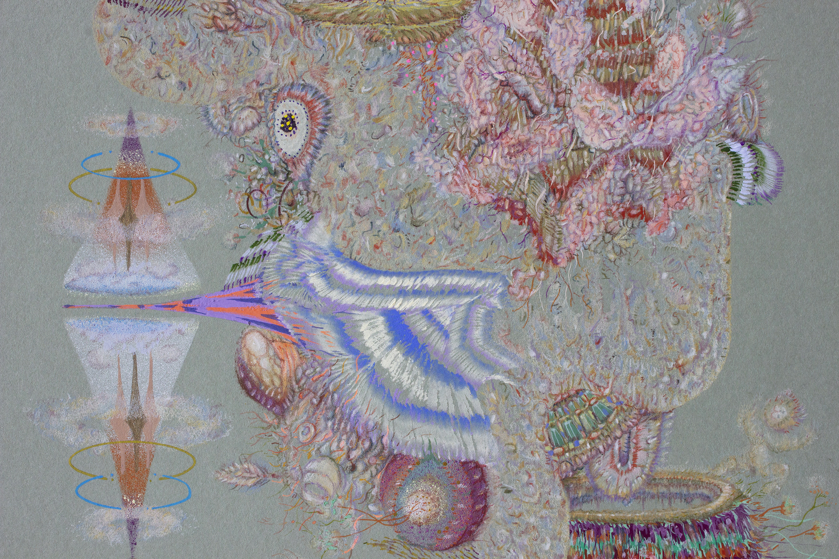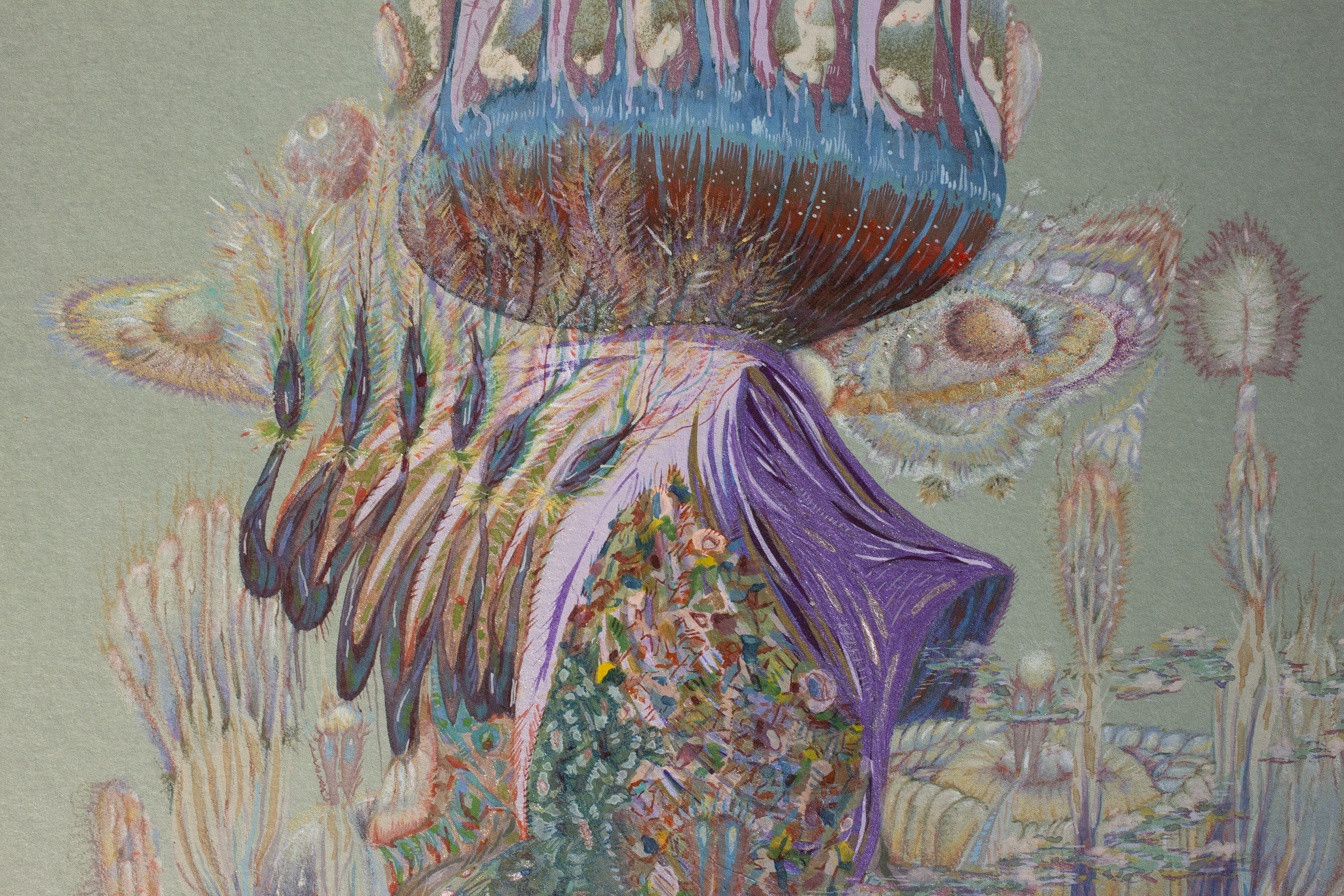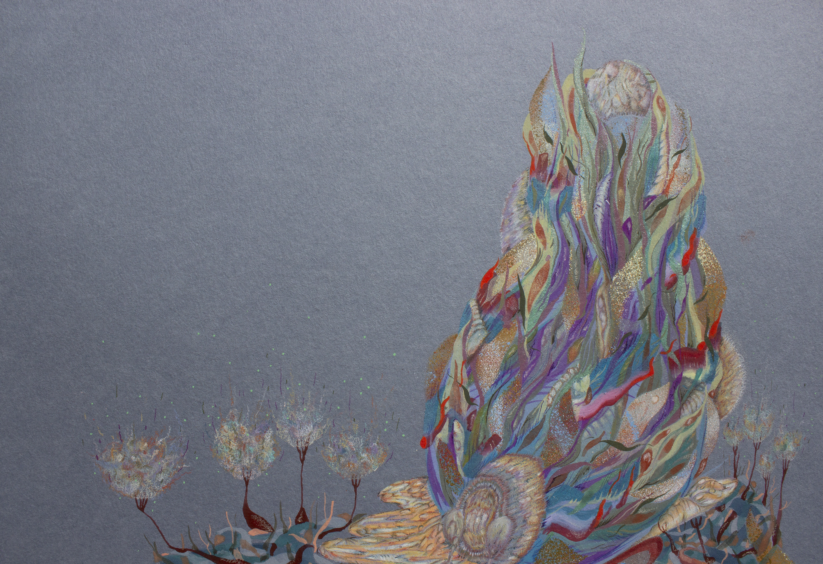 Lápiz color, acuarela, gouache, spray acrílico sobre papel clairefontaine, 250 gr.