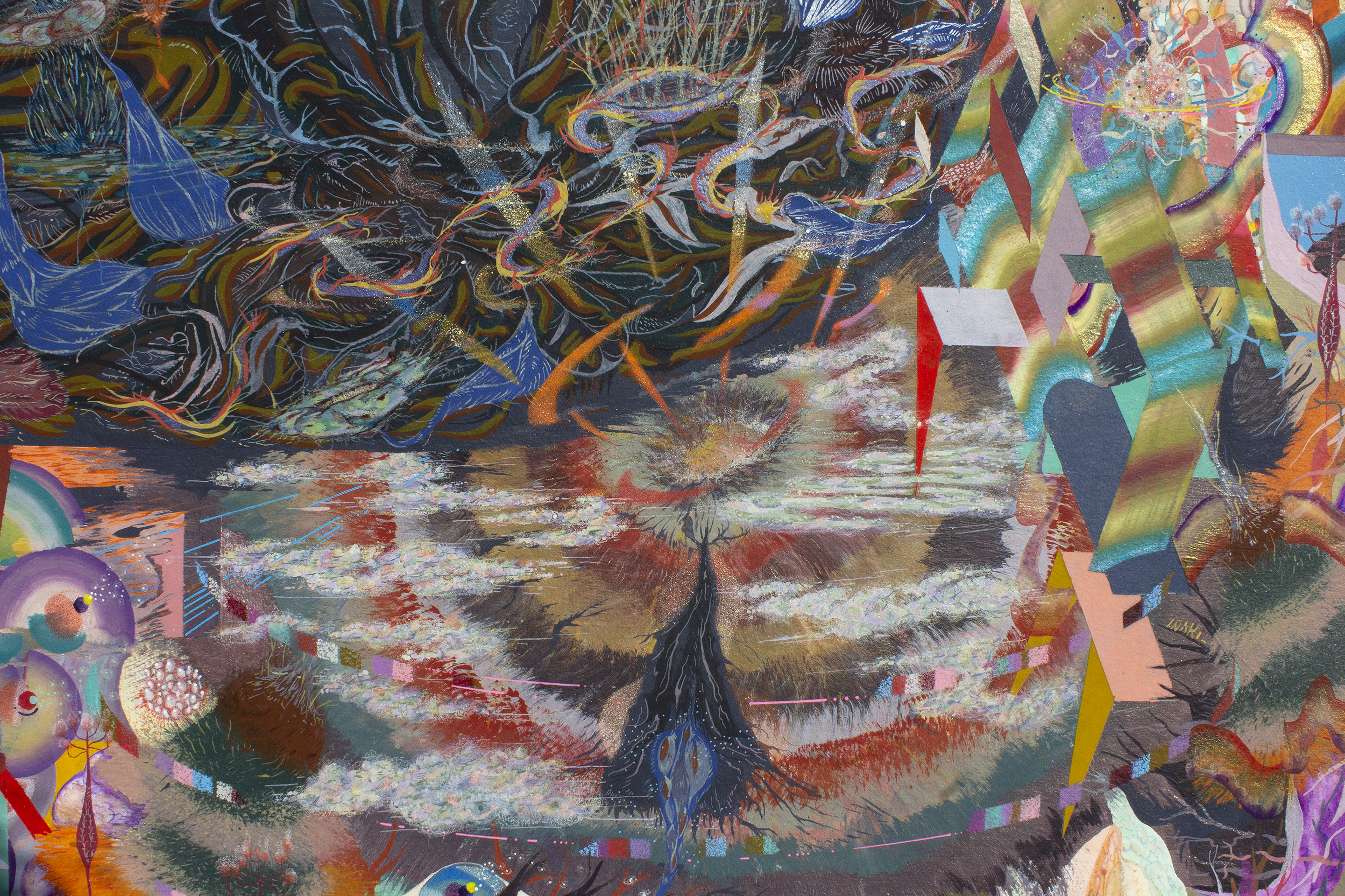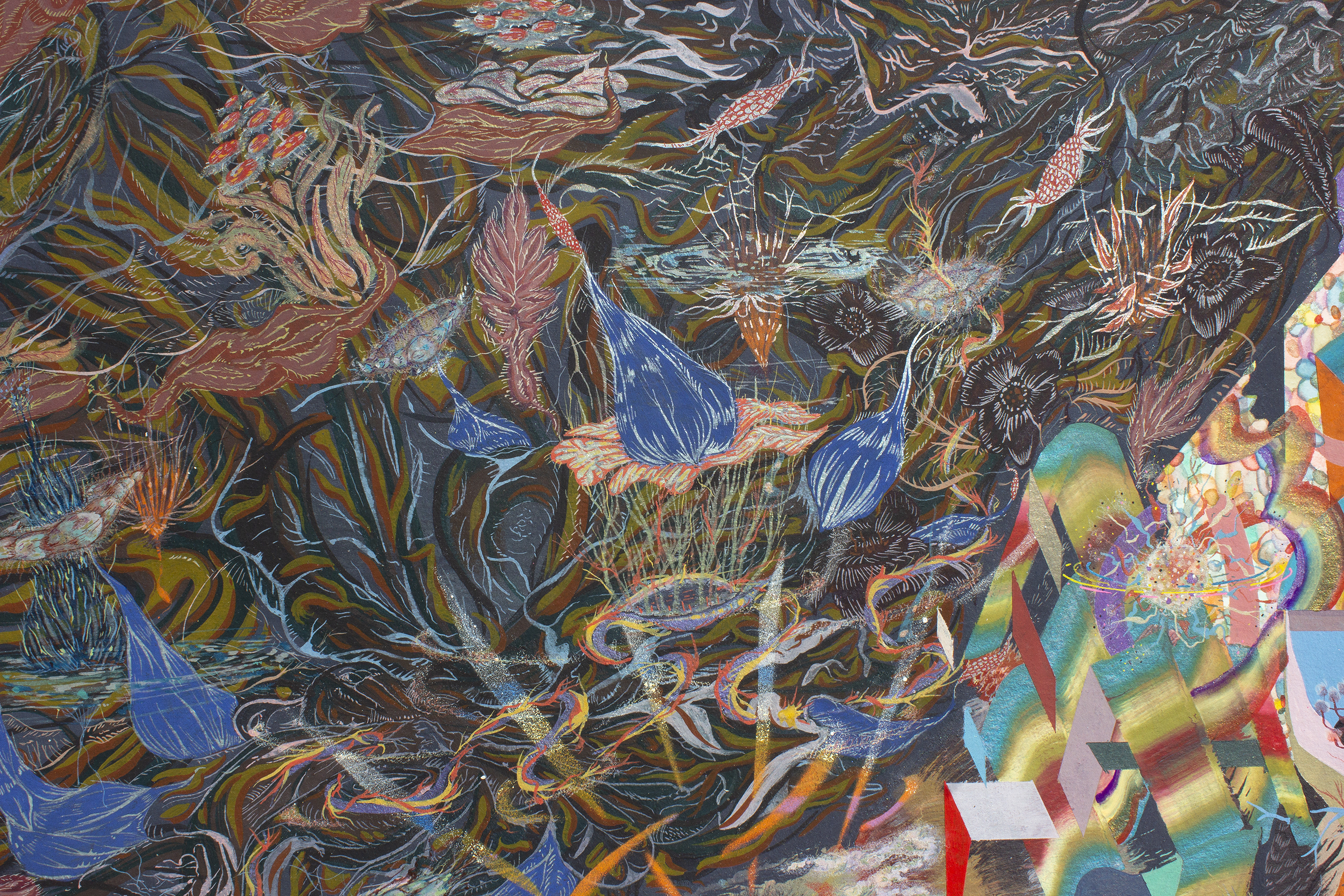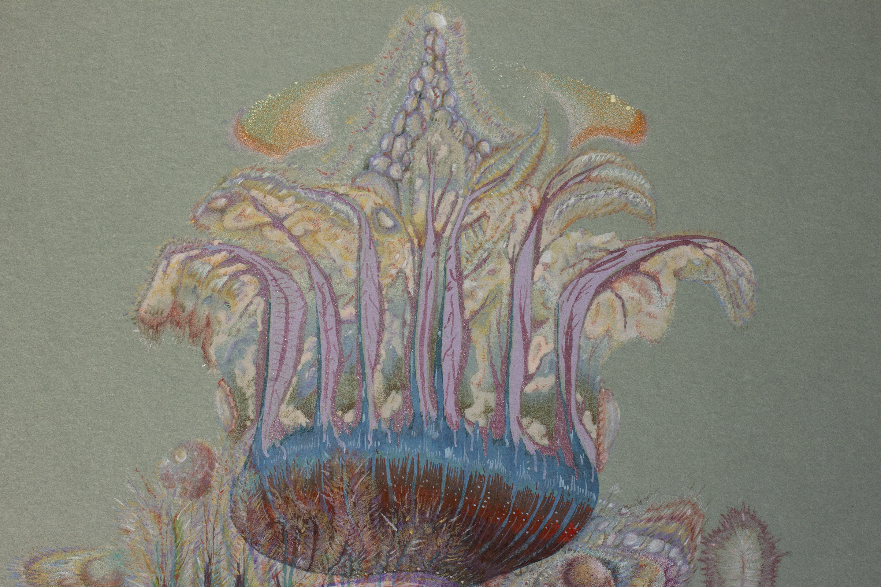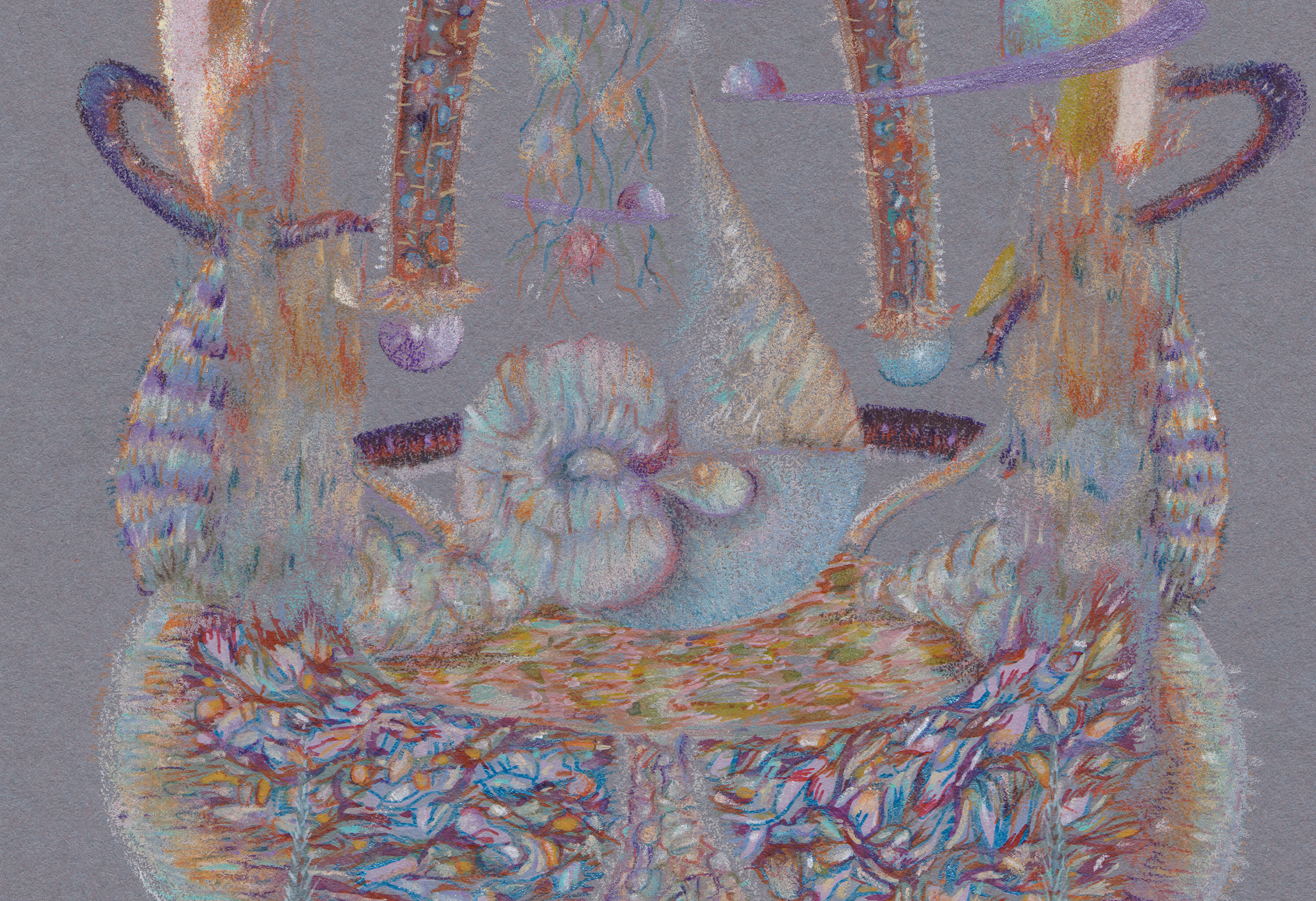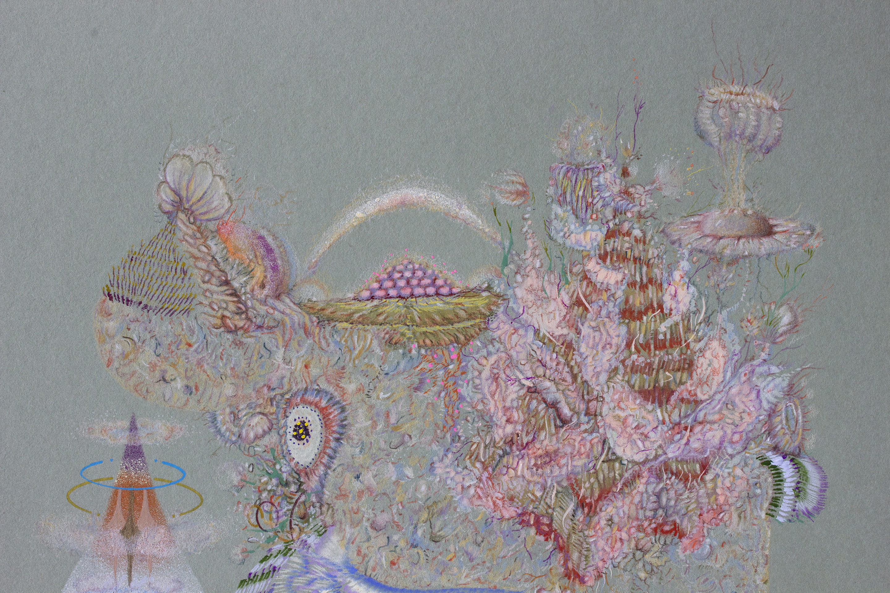 Lápiz color, acuarela, gouache, spray acrílico sobre papel clairefontaine, 250 gr.